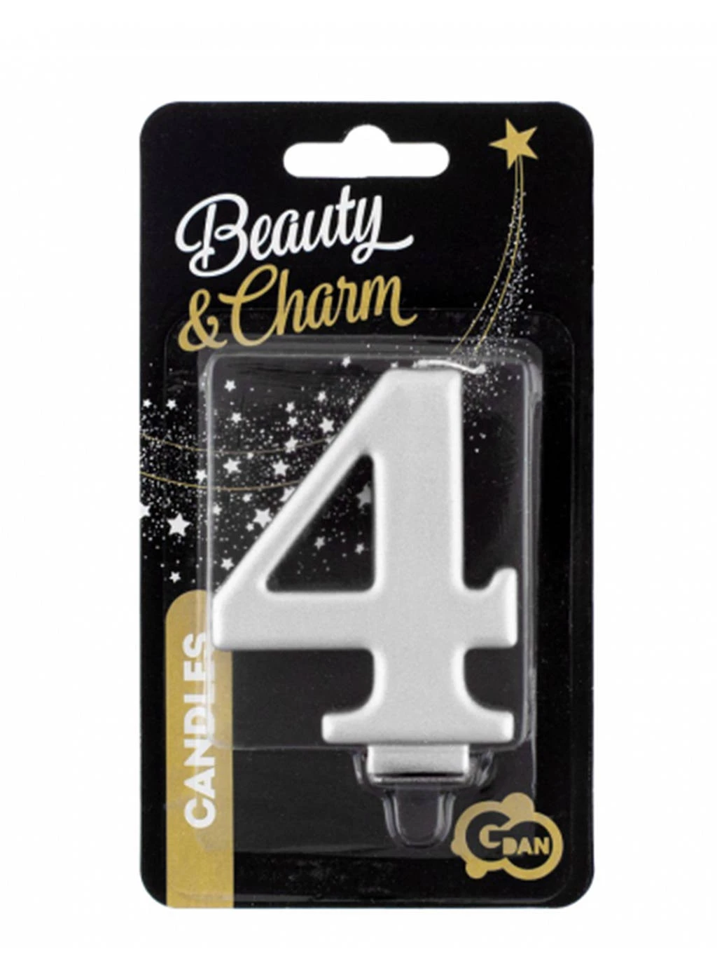 Svíčka B&C s číslem "4" - stříbrná metalíza
