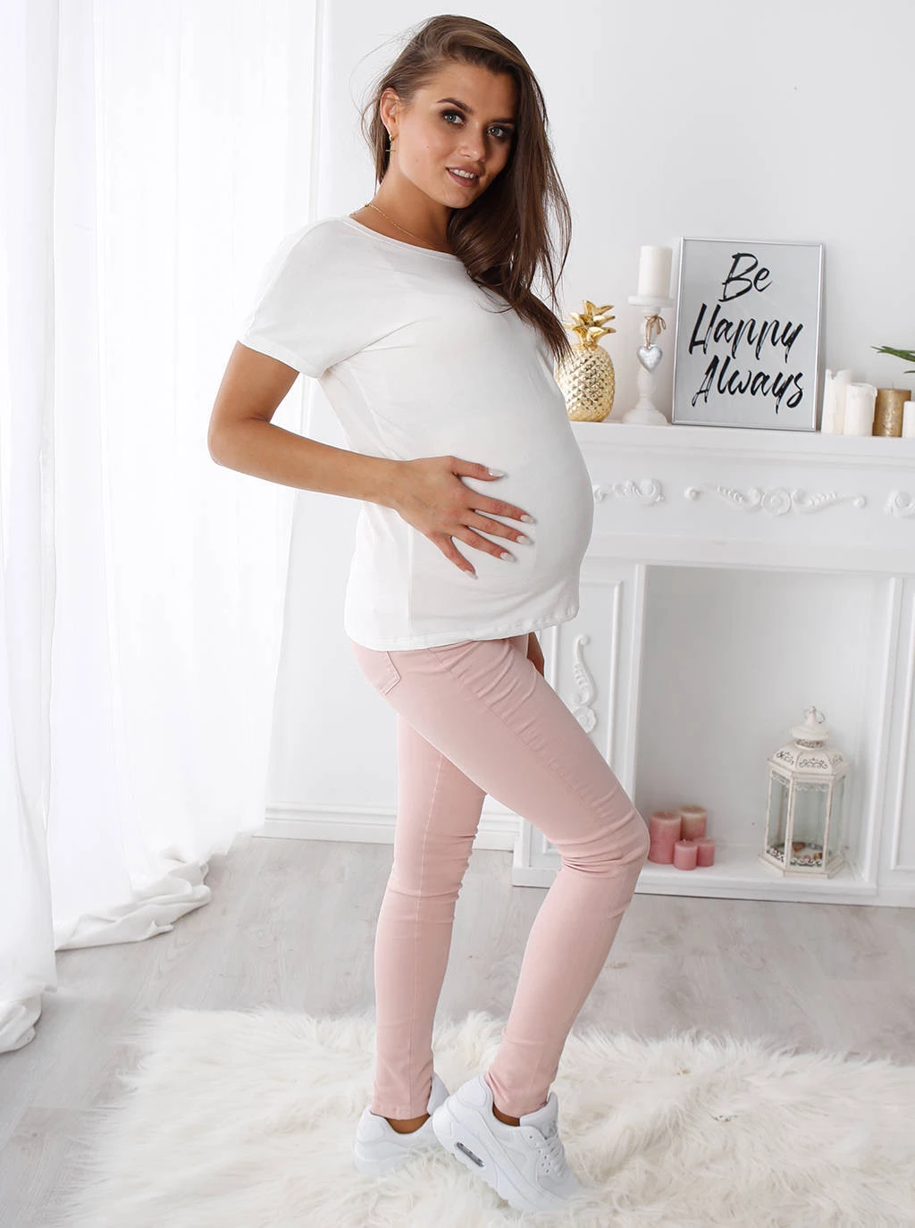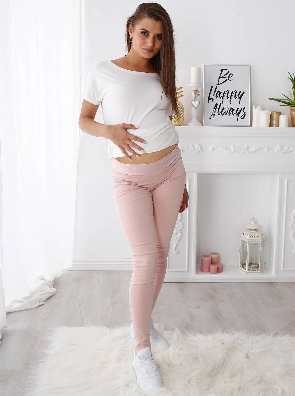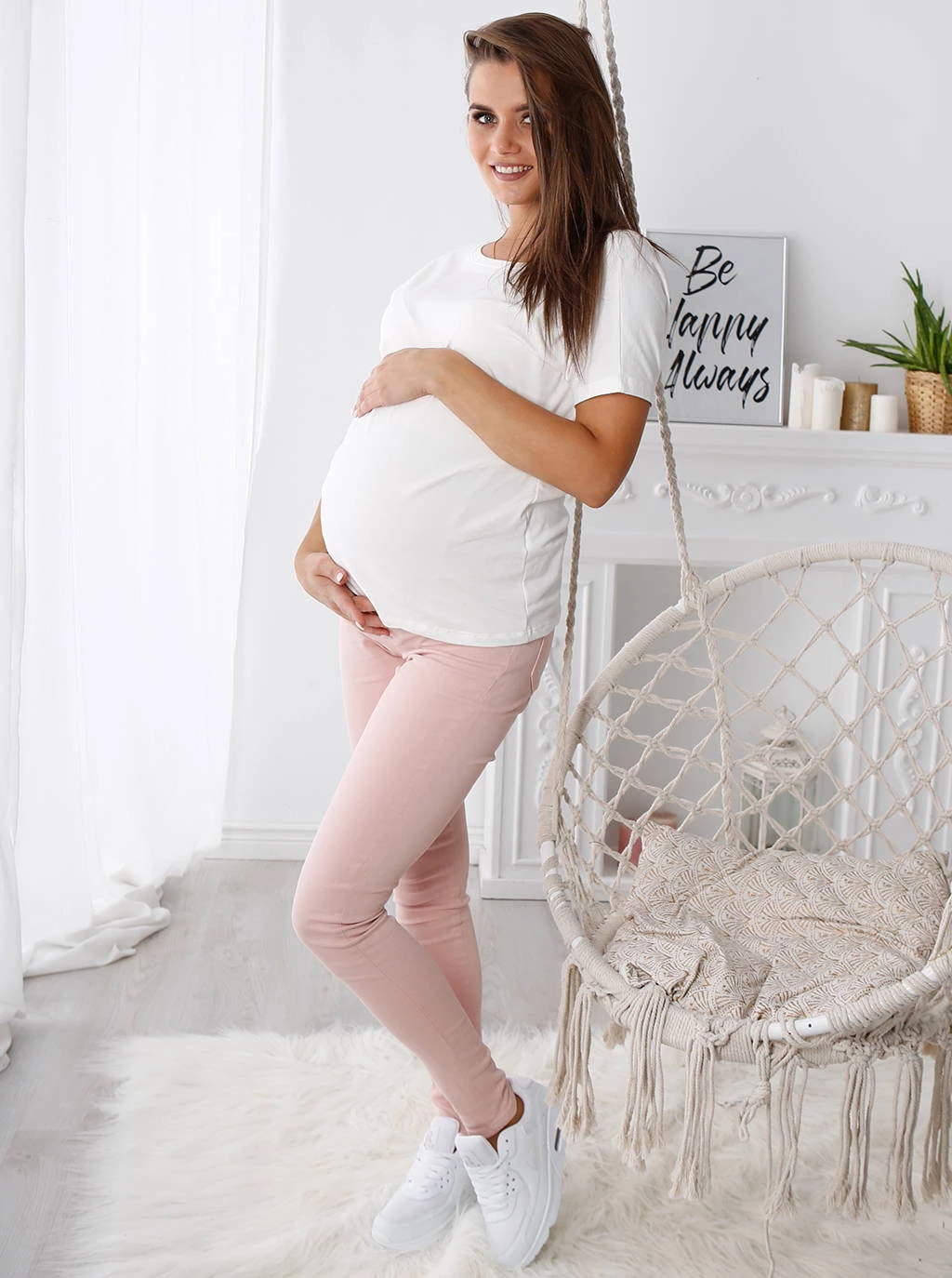 Těhotenské džíny je nezbytnou součástí šatníku každé nastávající maminky. Model, který představujeme, je vyroben z růžové džínoviny. Jsou velmi pohodlné a přiléhavé, aniž by obepínaly bříško nebo omezovaly pohyb. Jistě oceníte jejich pohodlí! Materiál, ze kterého jsou vyrobeny, je velmi příjemný a příjemný na dotek, takže jsou velmi šetrné k naší pokožce