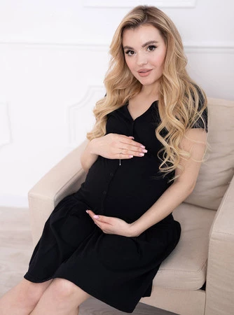 Hledáte jedinečný tričko pro nemocniciprodukt z internetového obchodu Fromommy. Těhotenská košile Marina je kombinací pohodlí, elegance a praktičnosti. Nadčasová, klasická černá barva nepochybně osloví mnoho žen, které hledají nový styl tričko k porodu. Dřívka umístěná uprostřed umožňují diskrétní a rychlé krmení novorozence. Spodní část kojící košile Marina je mírně rozšířená, takže mateřská košile vypadá módní šaty. Toto řešení umožňuje matce cítit se módně a stylově nejen během pobytu v nemocnici, ale i během prvních dnů doma. Celek působí opravdu zajímavě. Při výběru dokonalé těhotenské košile je samozřejmě velmi důležitý materiál. Přístav byl šité v Polsku. Vyrobeno z 100% bavlna kojící košile má na dotek jemnou tkaninu, která nedráždí pokožku matky ani dítěte. Tkanina je navíc prodyšná, takže se těhotná žena nemusí obávat nadměrného pocení během pobytu v nemocnici.