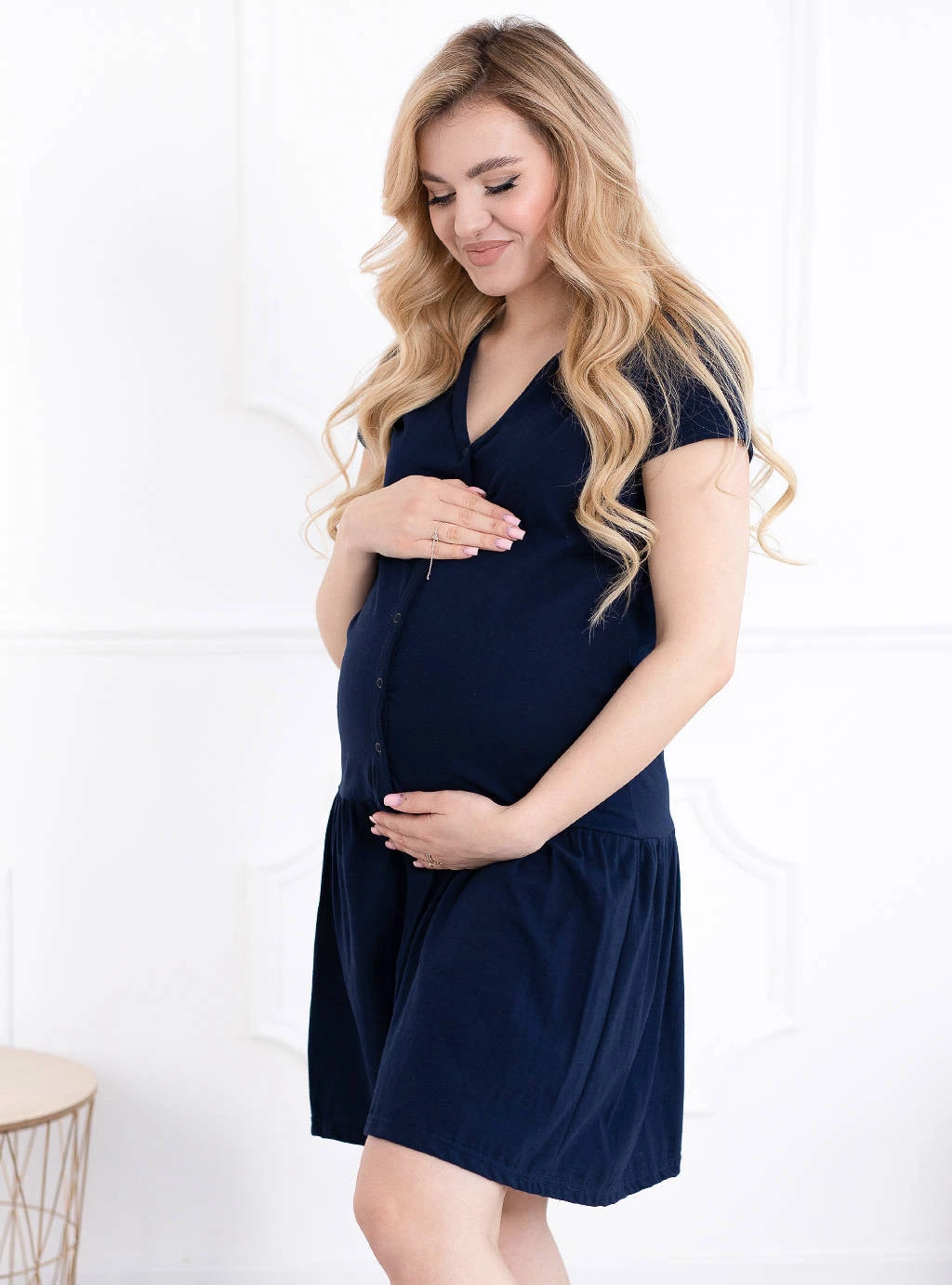 Pohodlné, praktické, praktické. To jsou bezpochyby vlastnosti, které jsou prioritou pro každou ženu, která hledá těhotenské tričko. Naslouchání radám svých zákaznic v internetovém obchodě Formommy vytvořila svůj nový produkt. Je to těhotenská noční košile Marinacož je ideální pro nemocnici. Tmavě modrá barva je nadčasová a nikdy nevyjde z módy. To jistě upoutá pozornost velké části žen. Praktičnost je vlastnost, kterou lze tomuto modelu přisoudit. Dřímoty umístěné uprostředje ideálním řešením pro rychlé a diskrétní krmení dítěte. Spodní část je mírně rozšířenáaby košile nevypadala standardně, ale spíše jako šaty módního střihu. Polský výrobce, 100% bavlnapatří k nejdůležitějším vlastnostem produktu. Tkanina je měkká a vzdušná. To zajišťuje pohodlné nošení nejen v nemocnici, ale i doma. Při vytváření těhotenského oblečení má butik s těhotenským oblečením na paměti pohodlí nositelky, proto je materiál košilky příjemný na dotek a nealergizující. Je bezpečný pro matku i dítě.