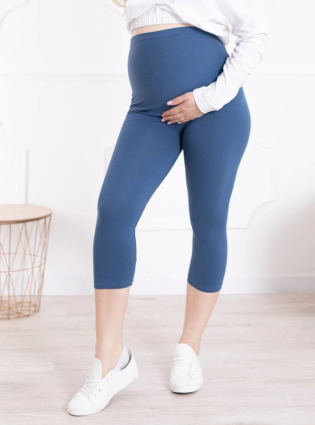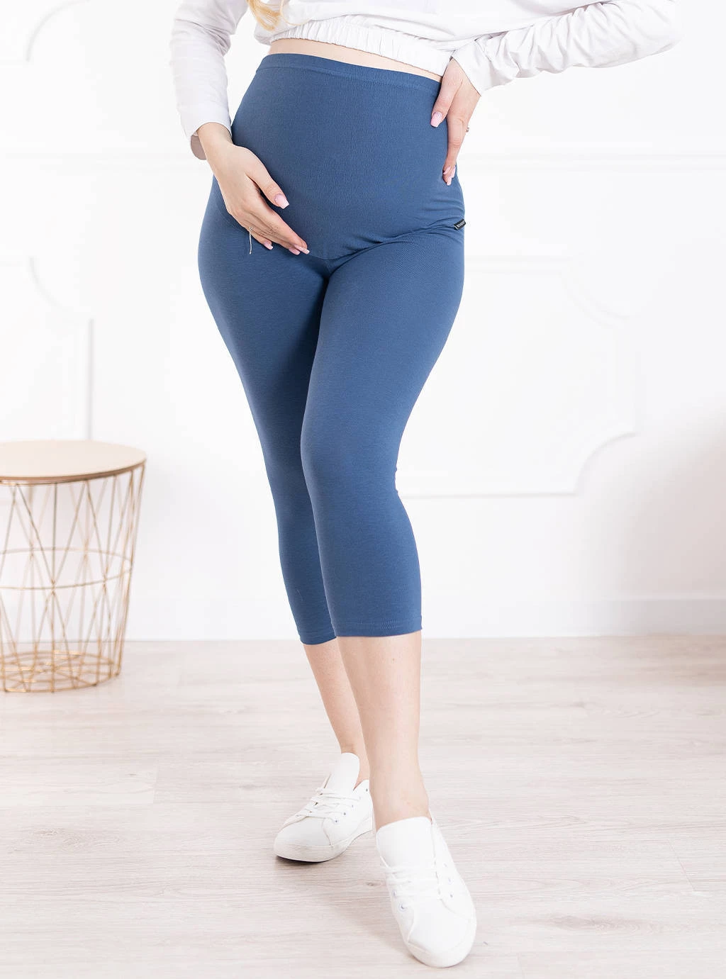 Těhotenské legíny v indigové barvě byly ušity z vysoce kvalitního polského bavlněného úpletu, který získal certifikát Oeko Tex Standard 100 udělovaný Textilním institutem v Lodži. Jedná se o tkaninu, která v kombinaci s příměsí lycry činí hotový výrobek měkkým a jemným. Mají ploché a neznatelné švy, které nedráždí pokožku maminky. Produkt je k dispozici v nejoblíbenějších velikostech od S do 6XL. Těhotenské legíny jsou součástí těhotenského oblečení, které poskytuje pohodlí, funkčnost, půvab a flexibilitu.