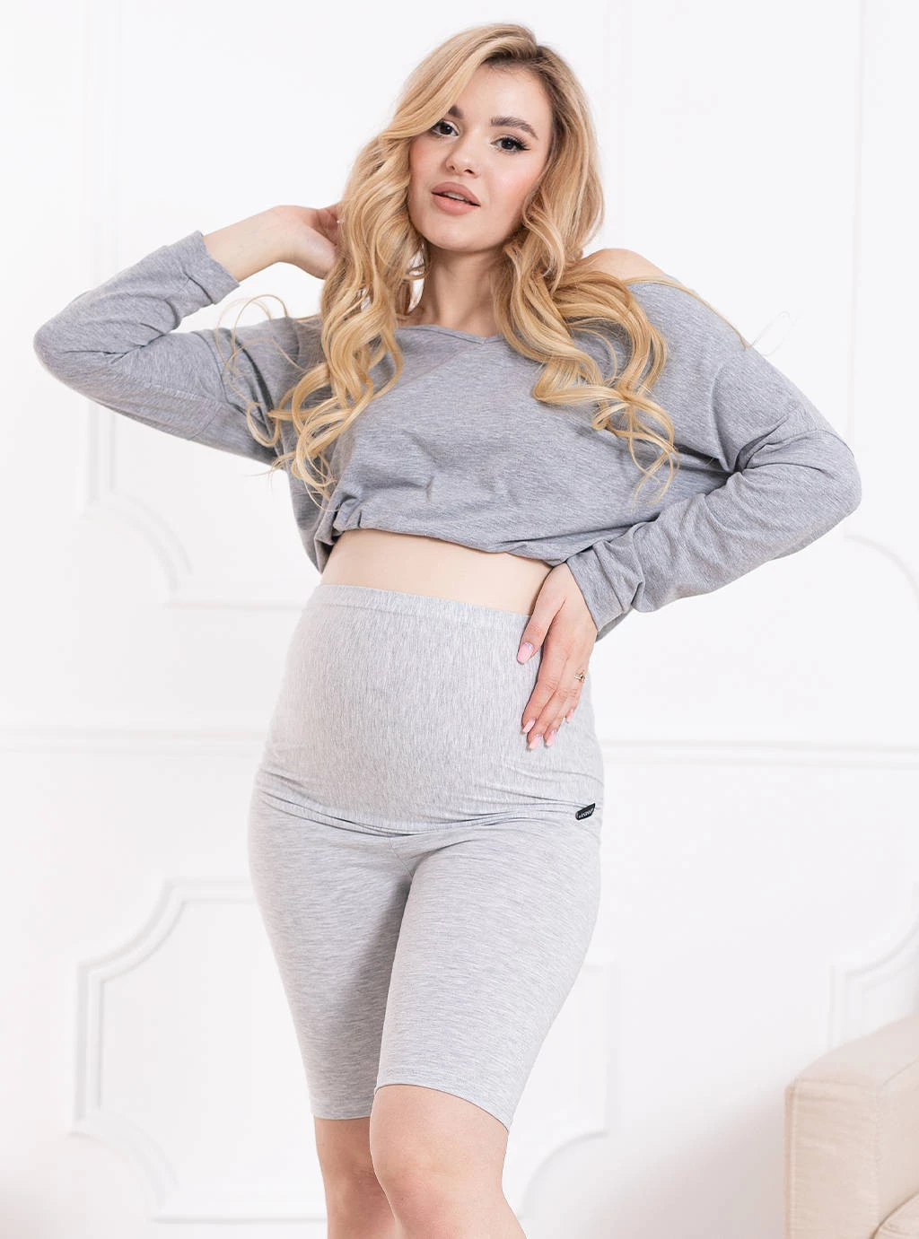 Těhotenské legíny v šedé barvě byly ušity z vysoce kvalitního polského bavlněného úpletu, který získal certifikát Oeko Tex Standard 100 udělovaný Textilním institutem v Lodži. Jedná se o tkaninu, která v kombinaci s příměsí lycry činí hotový výrobek měkkým a jemným. Mají ploché a neznatelné švy, které nedráždí pokožku maminky. Produkt je k dispozici v nejoblíbenějších velikostech od S do 6XL. Krátké šortky těhotenské šortky jsou součástí těhotenského oblečení, které poskytuje pohodlí, funkčnost, půvab a flexibilitu.