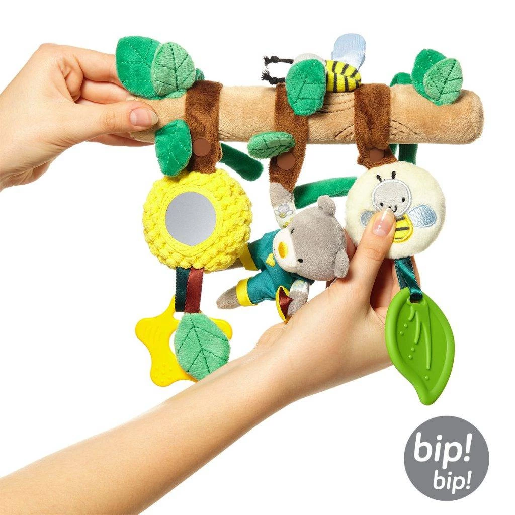 Hračka vzdělávací TEDDY GARDENER seznamuje dítě s rozmanitým světem barev, zvuků a tvarů. Tvar hole umožňuje připevnit hračku na jakýkoli typ autosedačky nebo kočárku. Díky tomu může dítě doprovázet na cestách a procházkách. Myšlenkou kolekce je podnítit dětskou zvědavost a povzbudit je k činnosti prostřednictvím hry. Získává nové dovednosti. Sbírka podporuje smyslové a duševní činnosti. Přívěsek dává dítěti pocit bezpečí a podporuje jeho emocionální vývoj prostřednictvím citlivého fungování v interakci. Hračka se skládá z několika dílů, které lze přemisťovat a oddělit. Dítě se tak učí prostorovému myšlení. Měkká silikonová kousátka připojená k hračce žvýká zklidňuje podrážděné dásně při prořezávání prvních zubů. Pískavý zvuk umístěná v hračce vzbuzuje zájem a učí příčinné vztahy. Šustivé prvky ukryté v listu upoutají zájem a pozornost dítěte. Zrcadlo umístěná na hračce umožňuje dítěti seznámit se s jeho vlastním obrázek. Různé textury materiálů stimulovat hmat dítěte.