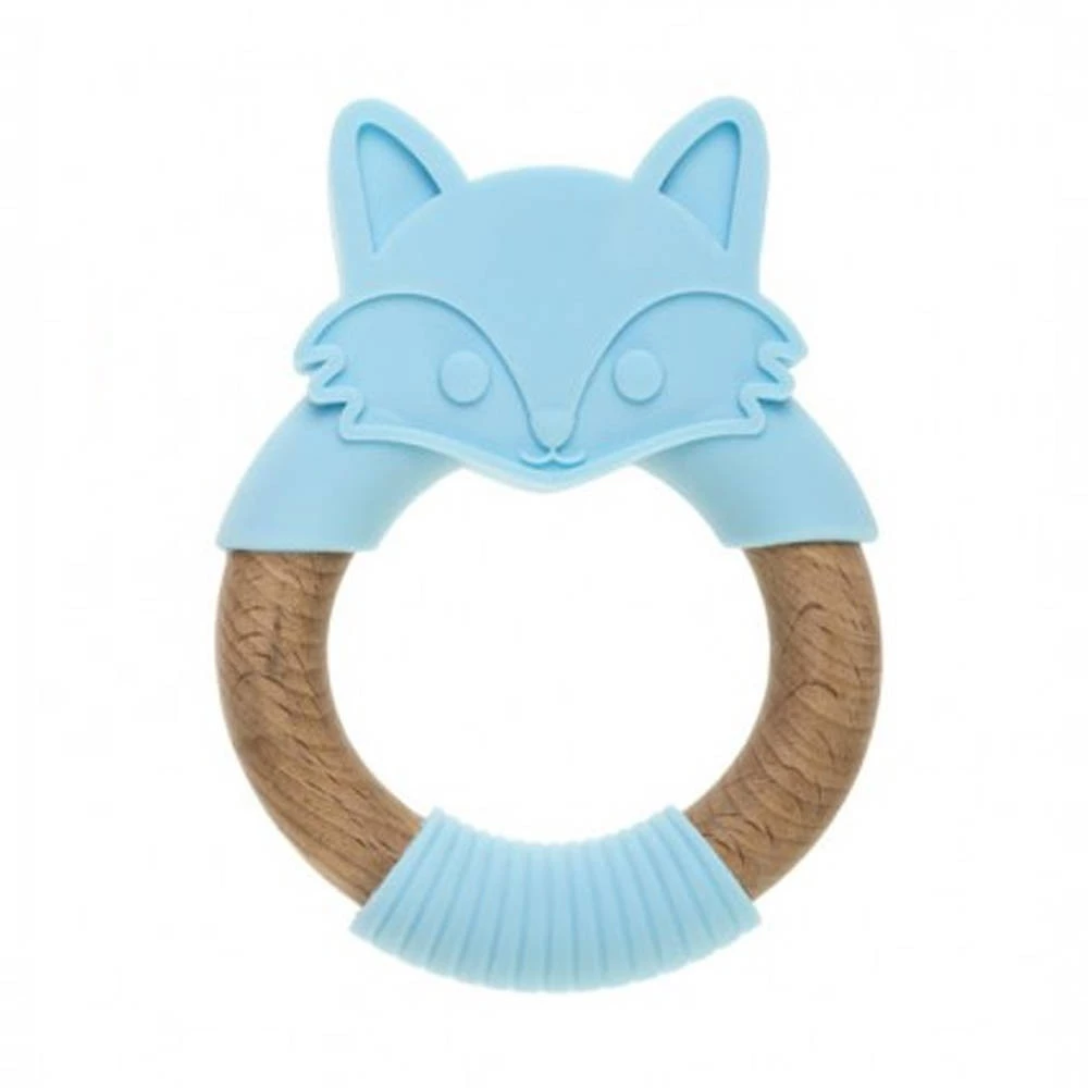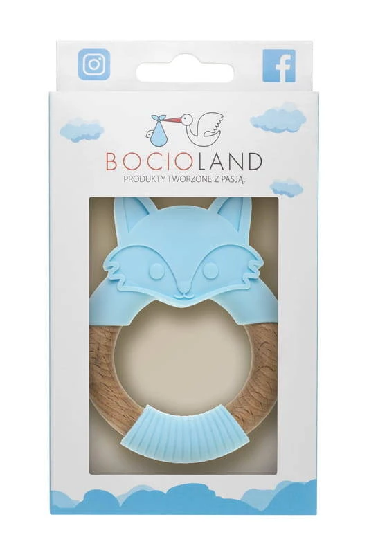 BOCIOLAND Dřevěné silikonové kousátko liška - modré