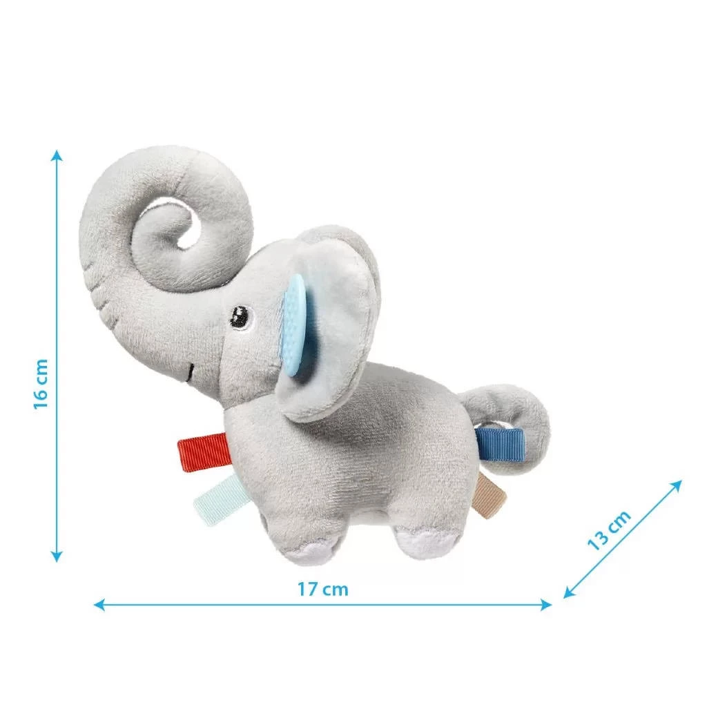 Závěs na kočárek ze sbírky FAIRY TALALES - ELEPHANT ETHAN seznamuje dítě s rozmanitým světem barev, zvuků a tvarů. Díky univerzální nástavec ve tvaru stočené trubky, vhodný pro jakýkoli typ autosedačky nebo kočárku, může doprovázet vaše dítě na cestách a procházkách. Myšlenkou kolekce je podnítit dětskou zvědavost a povzbudit je k činnosti prostřednictvím hry. Získává nové dovednosti. Sbírka podporuje smyslové a duševní činnosti. Hračka dává dítěti pocit bezpečí a podporuje jeho emocionální vývoj díky citlivé funkci v interakci. Díky univerzálnímu držadlu lze hračku zavěsit na autosedačku, kočárek nebo postýlku. Zvuk chrastění má na dítě uklidňující účinek. Měkké silikonové kousátko připojené k hračce kousátko zklidňuje podrážděné dásně při prořezávání zubů. Šustivé prvky hračka ukrytá uvnitř udrží zvědavost a pozornost vašeho dítěte po nějakou dobu.