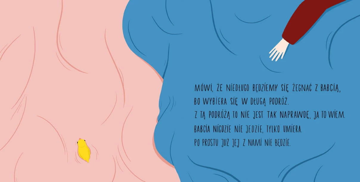 Kazík má milovanou babičku, která si s ním hraje a dělá mu výborné palačinky s marmeládou. Jednoho dne je chlapec překvapený a smutný, protože jeho babička už nevypadá jako dřív. Už není tak veselá a tráví dny v posteli. Chystá se někam? A co to znamená?