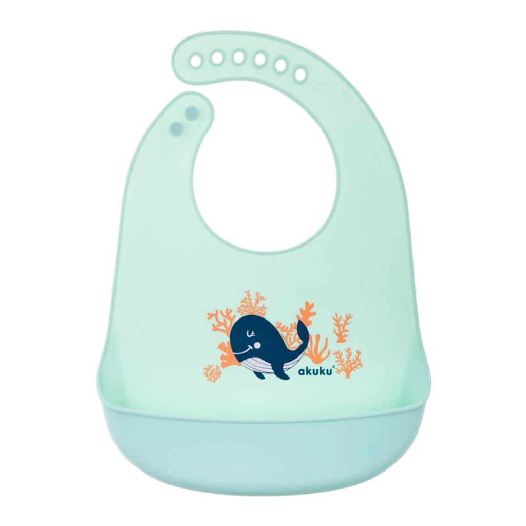 Silikonový bryndák od společnosti "akuku" je praktický a pohodlný způsob, jak ochránit oblečení vašeho dítěte před ušpiněním. Má praktickou kapsu, která zachytí zbytky spadlého jídla. Nastavitelné zapínání usnadní každé mamince přizpůsobit velikost bryndáčku tak, aby vyhovoval jejímu děťátku. Funguje dobře doma i na procházkách. Bryndák je vyroben ze 100% lehkého a bezpečného silikonu. Neobsahuje žádné další prvky, které by mohly dráždit pokožku dítěte nebo představovat nebezpečí. Extrémně měkké a příjemné na dotek.
