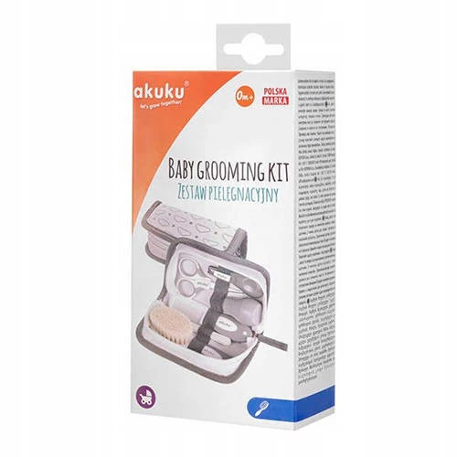 Sada pro péči o dítě v pohodlné a praktické kosmetické taštičce. Nůžky (s tenkými kovovými čepelemi a zaoblenými hranami) a kleštičky na nehty pomohou nehty bezpečně a spolehlivě ostříhat, zatímco pilník na nehty snadno odstraní nerovnosti a ochrání dítě před poškrábáním. Kartáč a hřeben z měkkých přírodních štětin s protiskluzovou rukojetí se postarají o hlavu vašeho dítěte. Tryska s měkkou špičkou je určena k uvolnění dýchacích cest a odstranění vody a vosku z uší dítěte.