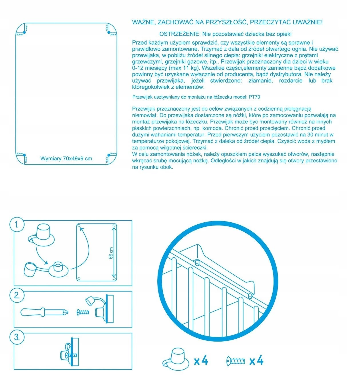 - výměnná jednotka určená k montáži na dětské postýlky o šířce 60 cm