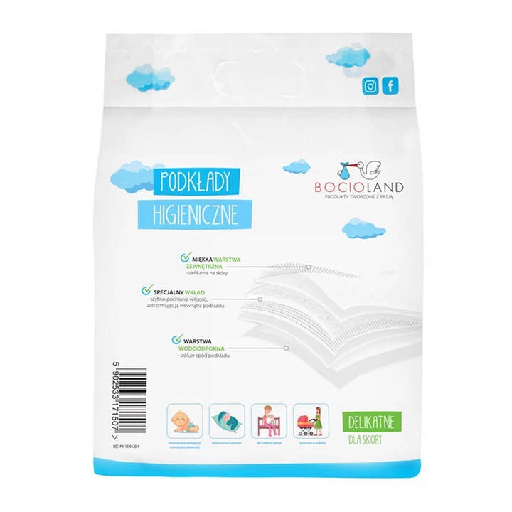 Dokonale chrání dětskou postýlku před znečištěním. Vhodné pro ženy po porodu a pro péči a přebalování dětí. Nepostradatelný doma i na cestách. Vrchní vrstva je speciální a na dotek příjemná netkaná textiliea, který odvádí tekutinu uvnitř podložky. Absorpční podložka celulóza izoluje proti vlhkosti a poskytuje pocit sucha a pohodlí.