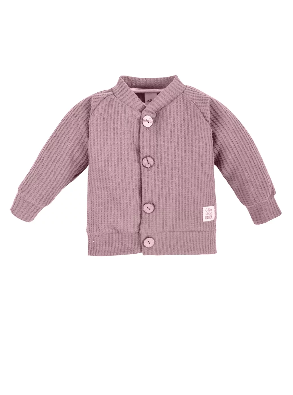 Pohodlná růžová mikina pro miminka se stojáčkem a zapínáním na dřevěné knoflíky. Makoma, výrobce dětských mikin, vytvořila unikátní kolekci z měkké vzdušné látky, jejíž součástí je i růžová mikina. Pohodlná mikina pro miminko je nezbytným prvkem dětského šatníku, proto se vyplatí investovat do špičkového produktu, jakým je dětská mikina s roztomilými knoflíky z kolekce Natural Waffel.