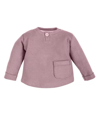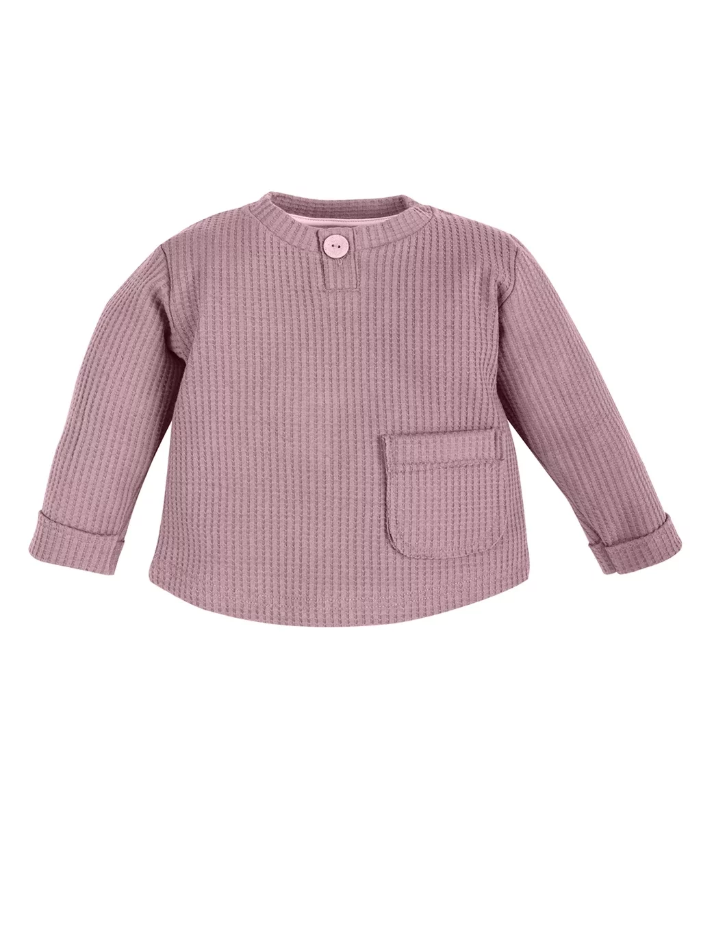 Pohodlná růžová dětská mikina s ozdobnými knoflíky pod krkem. Růžová dětská mikina má manžetové rukávy a ozdobnou kapsu na boku halenky. Pohodlná dětská mikina je nezbytným prvkem dětského šatníku, proto se vyplatí investovat do nejkvalitnějšího produktu, jakým je bavlněná dětská mikina z kolekce Natural Waffel.