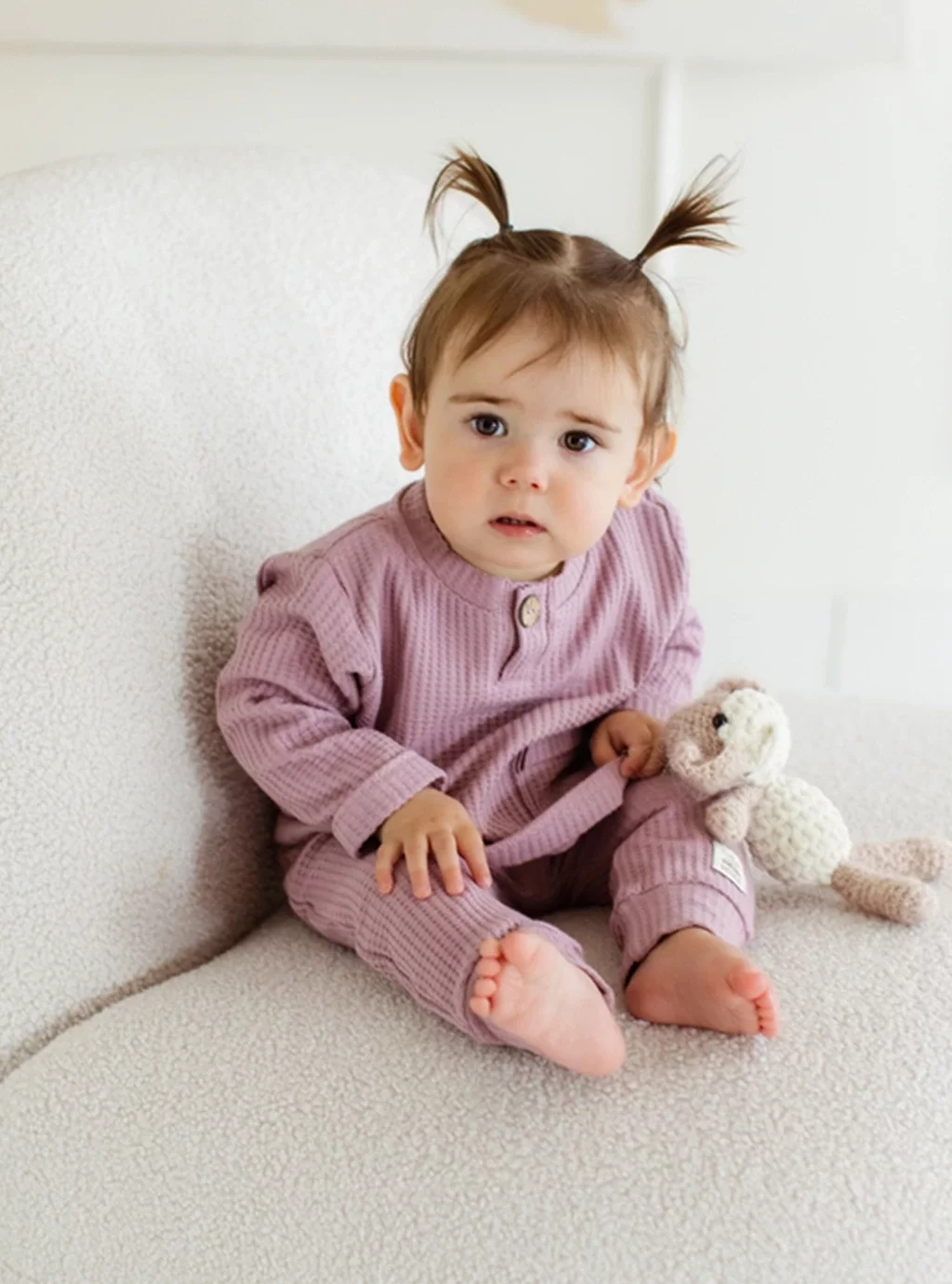 Kojenecké tepláky Makoma Natural Waffel - růžové