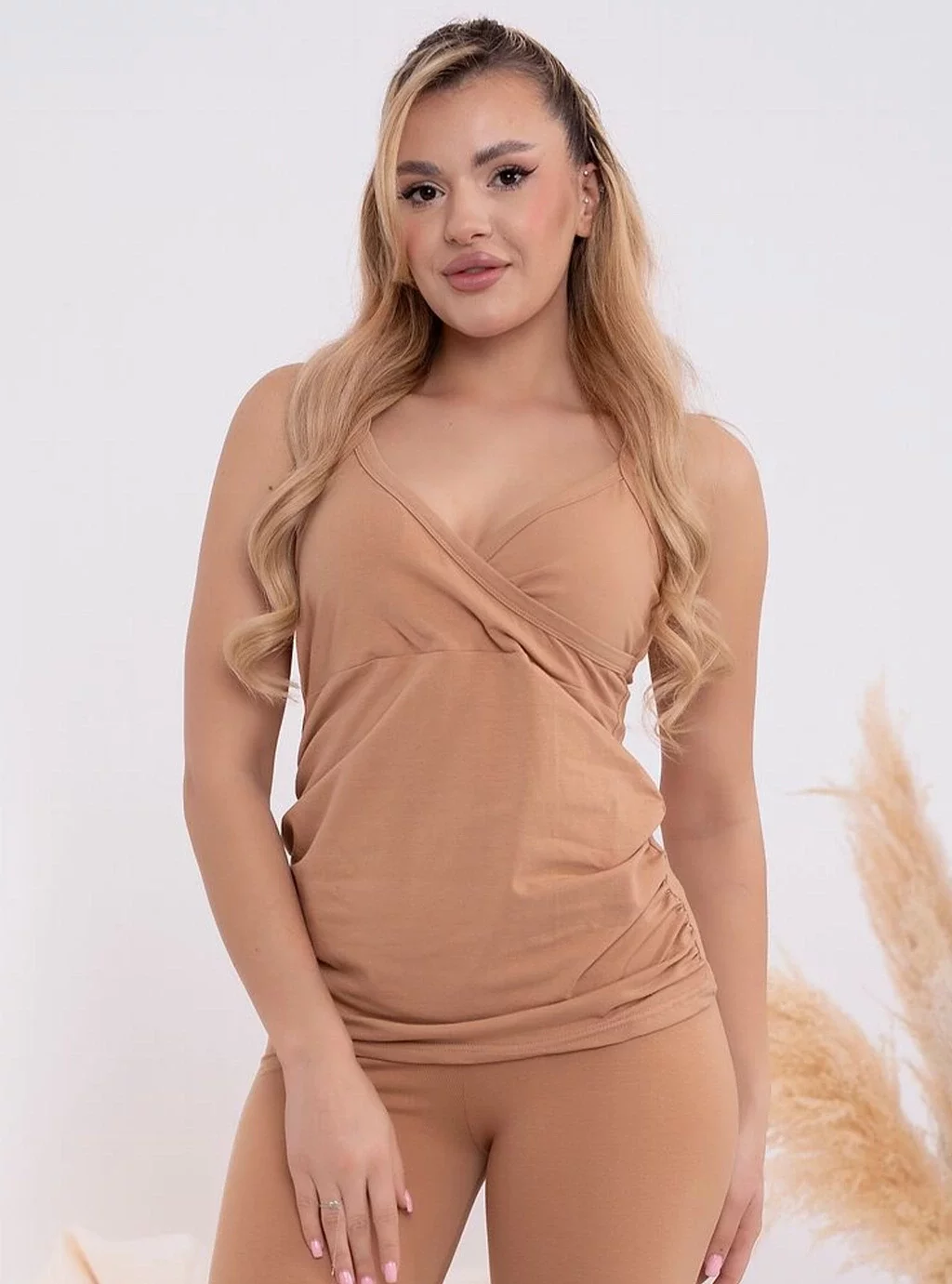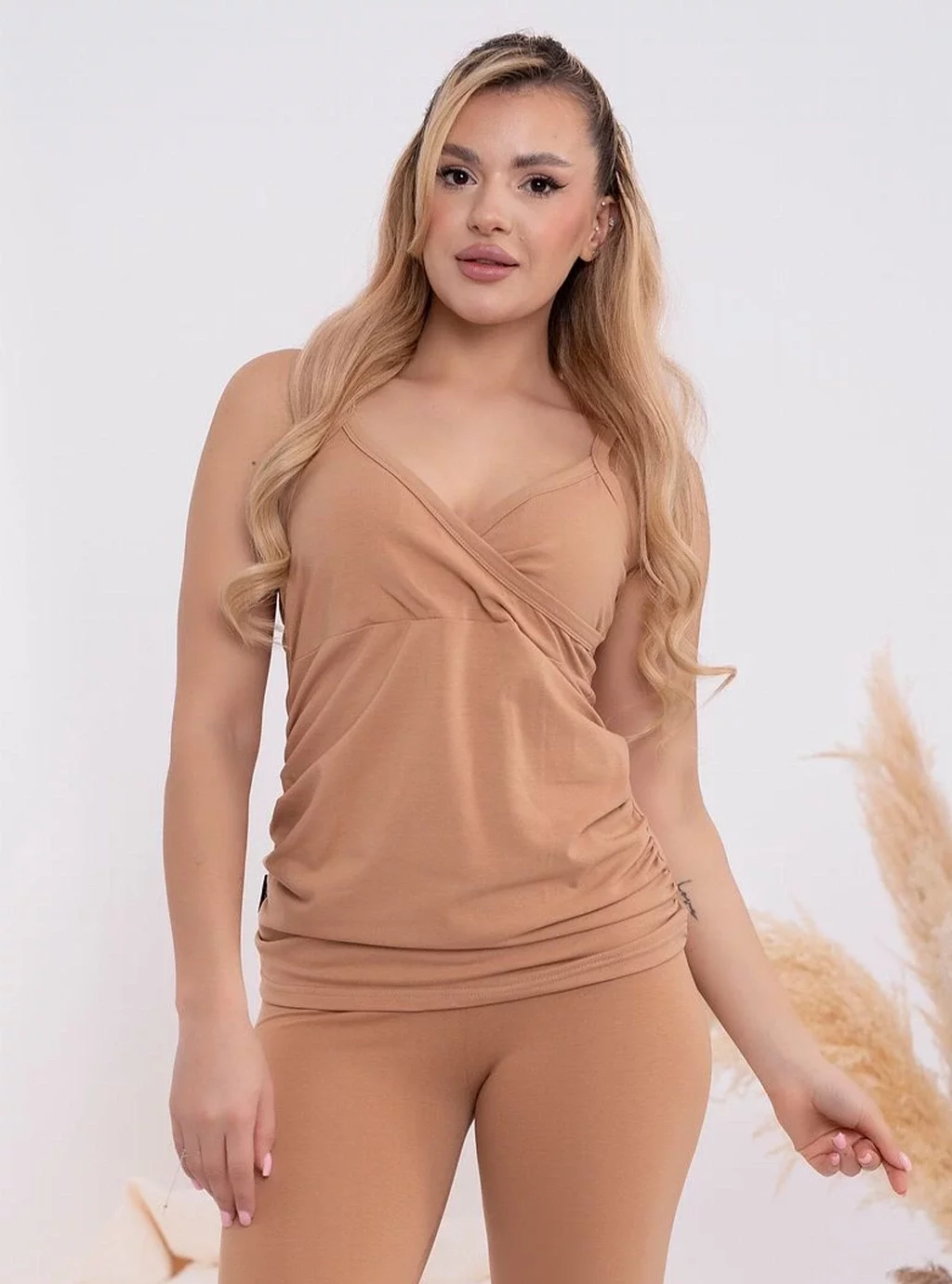 Těhotenská a kojící halenka Sandy s ramínky v barvě cappuccino je perfektní volbou pro každou maminku, která si cení pohodlí, funkčnost a styl. Ten nesmí chybět v šatníku každé nastávající a kojící ženy a zaručuje pohodlí a eleganci v jednom.