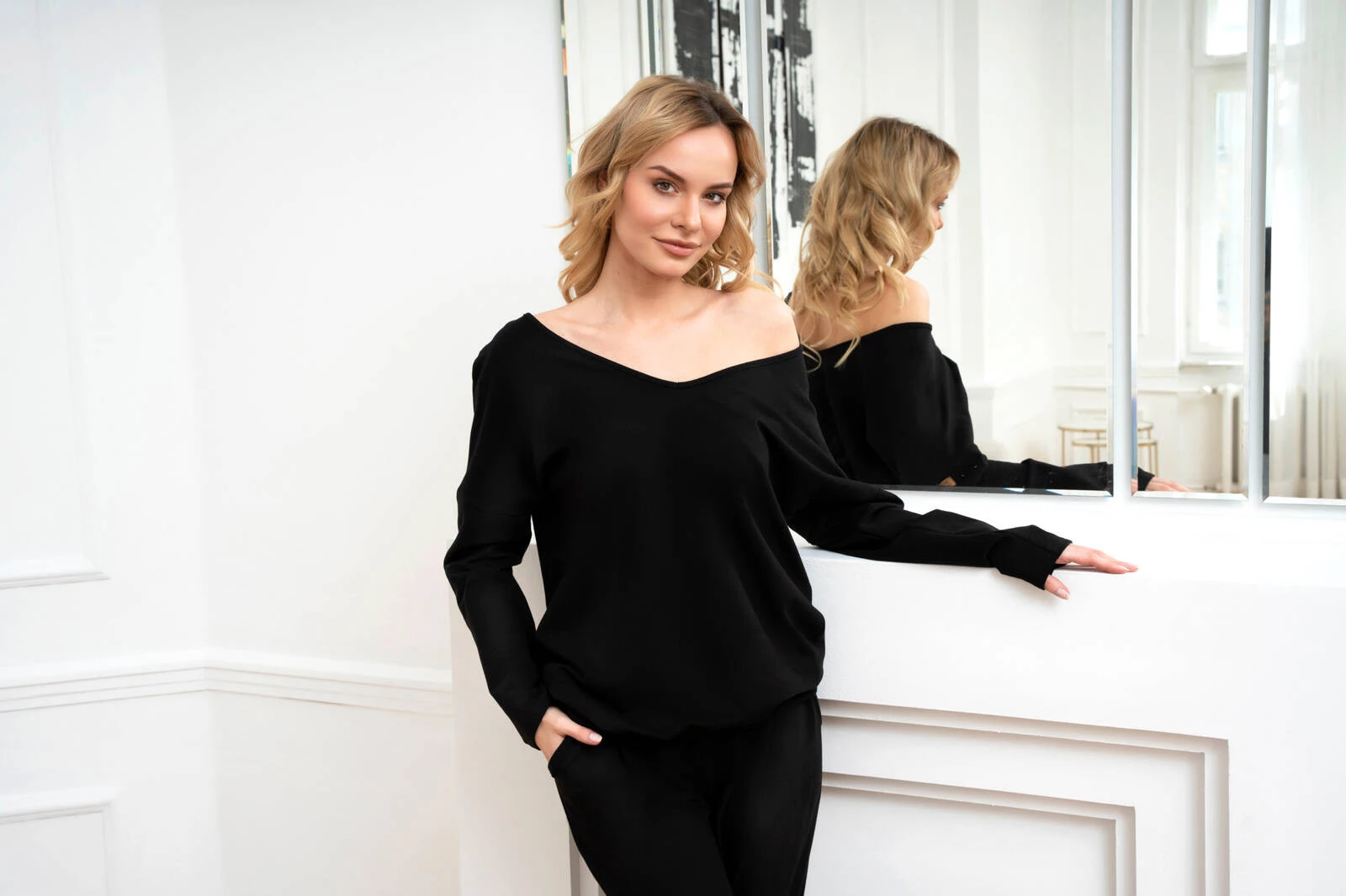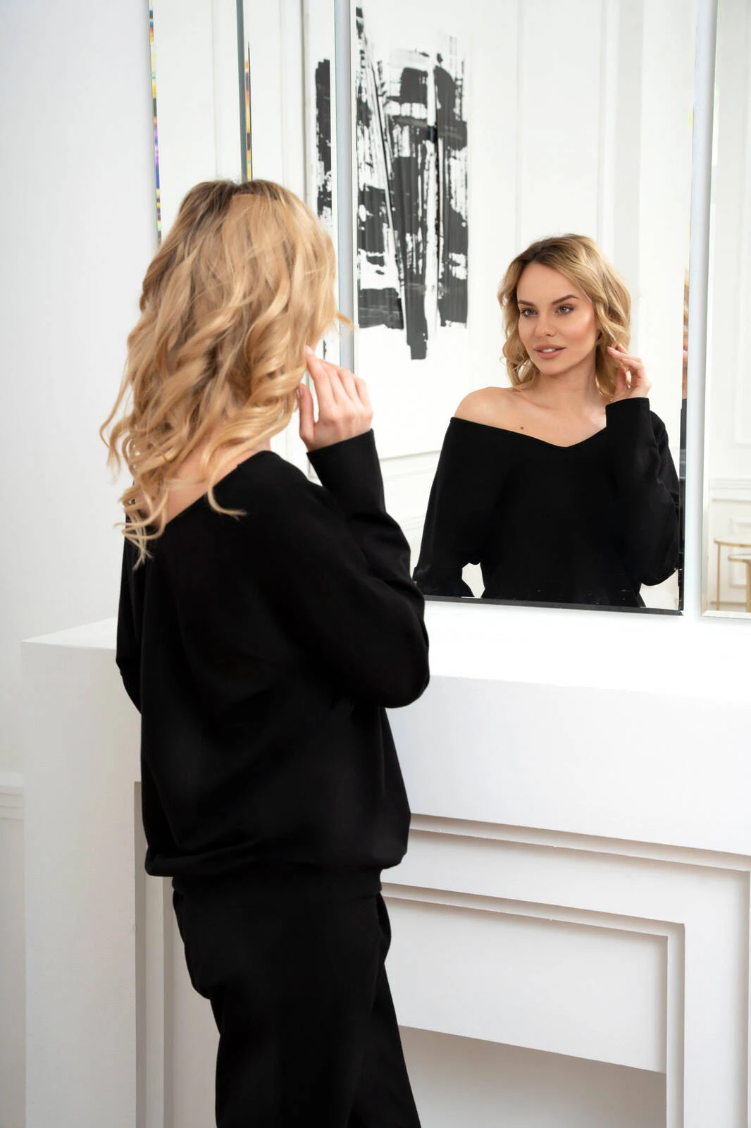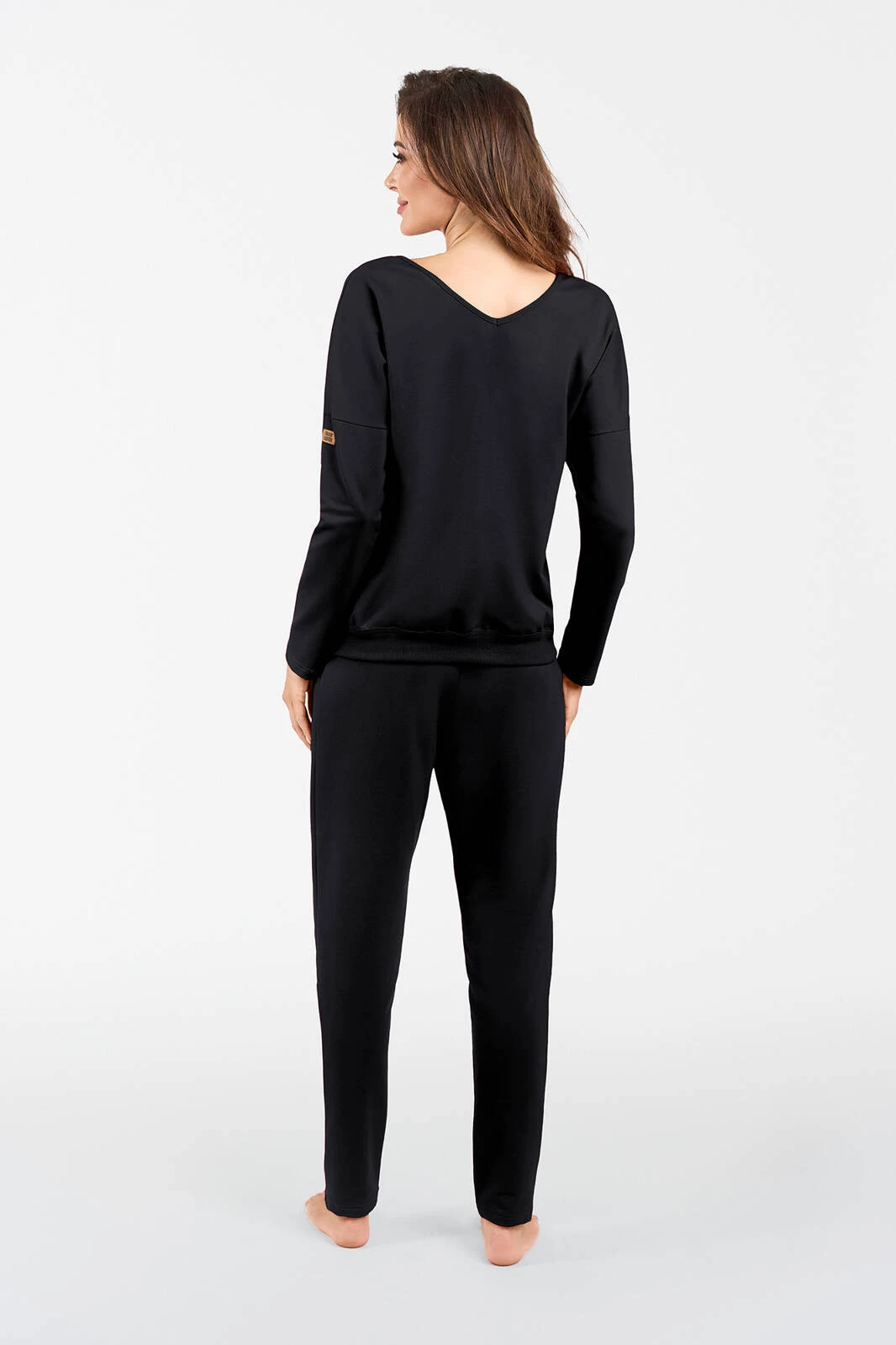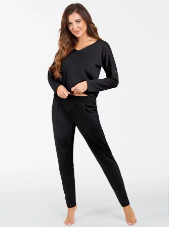 Dámská dvoudílná tepláková souprava Karina, dlouhý rukáv, dlouhé kalhoty - Černá