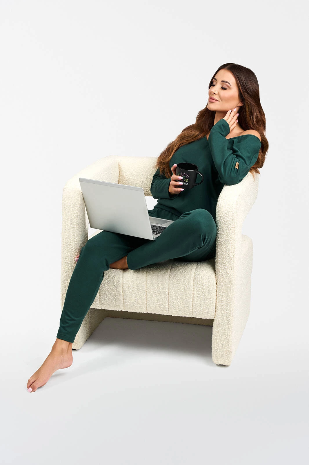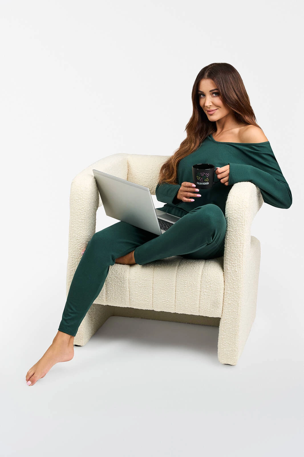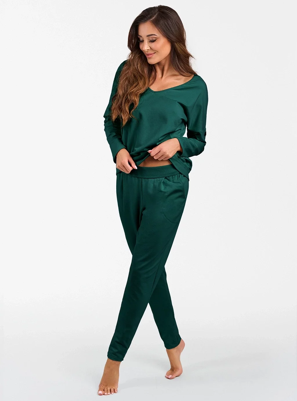Karina dvoudílná dámská tepláková souprava, dlouhý rukáv, dlouhé kalhoty - lahvově zelená