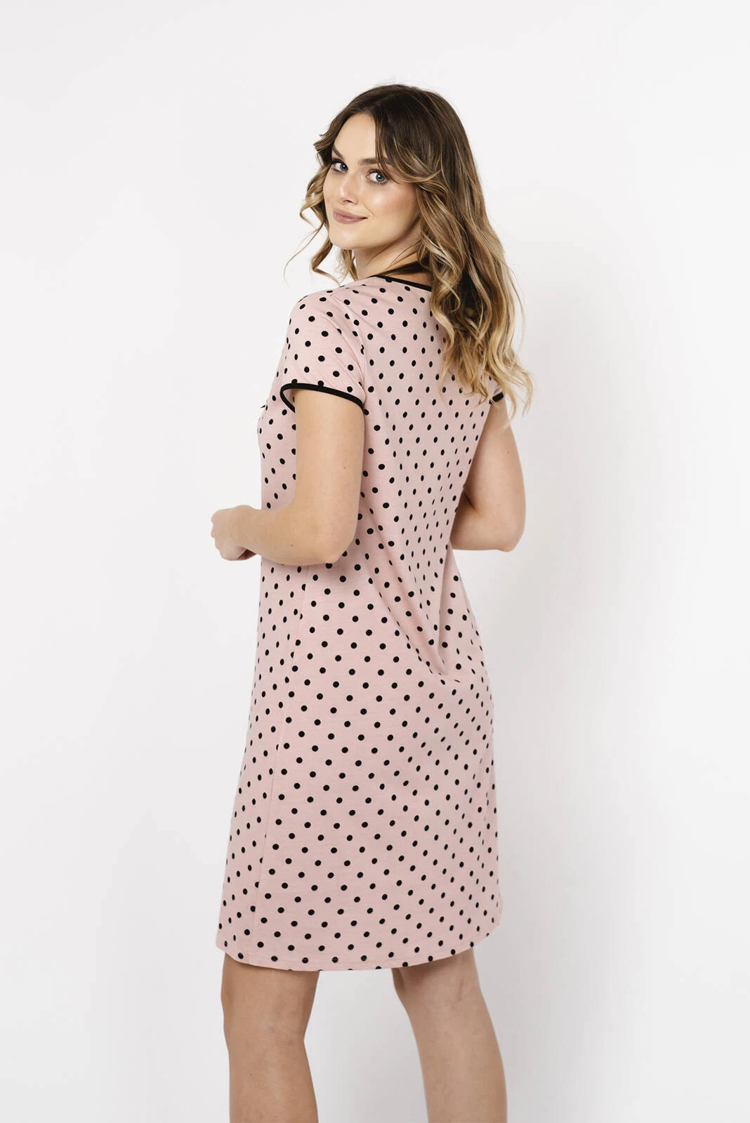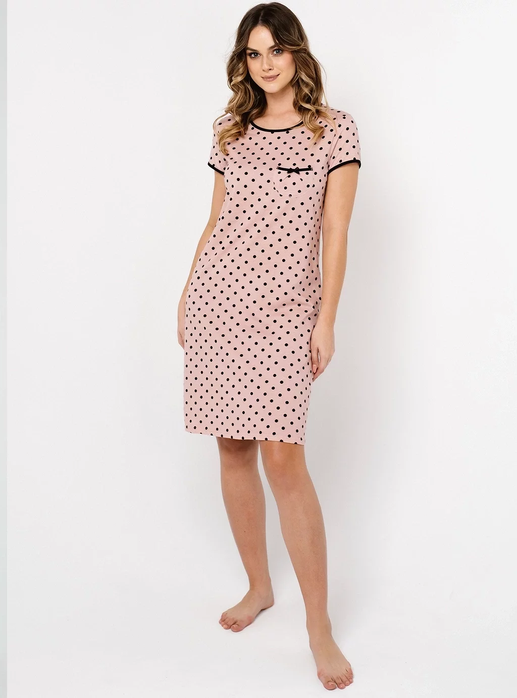 Dámská noční košile Bonilla krátký rukáv - Pudr s puntíky