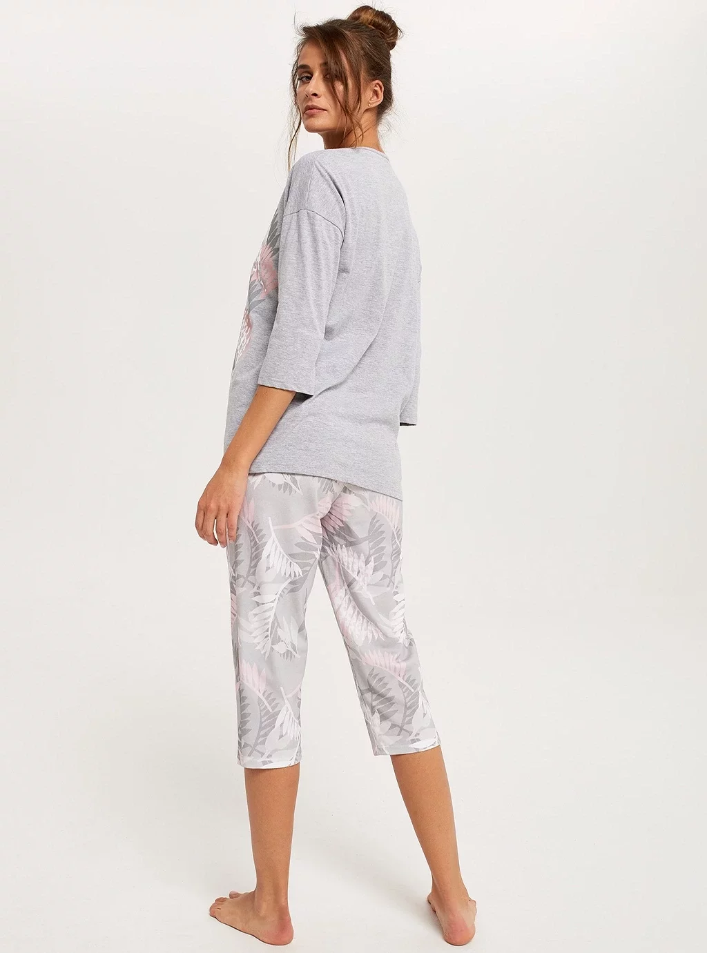 Dámské pyžamo Dracaena, 3/4 rukáv. 3/4 melanžové/potištěné kalhoty