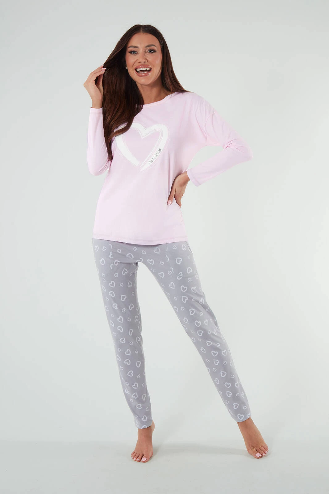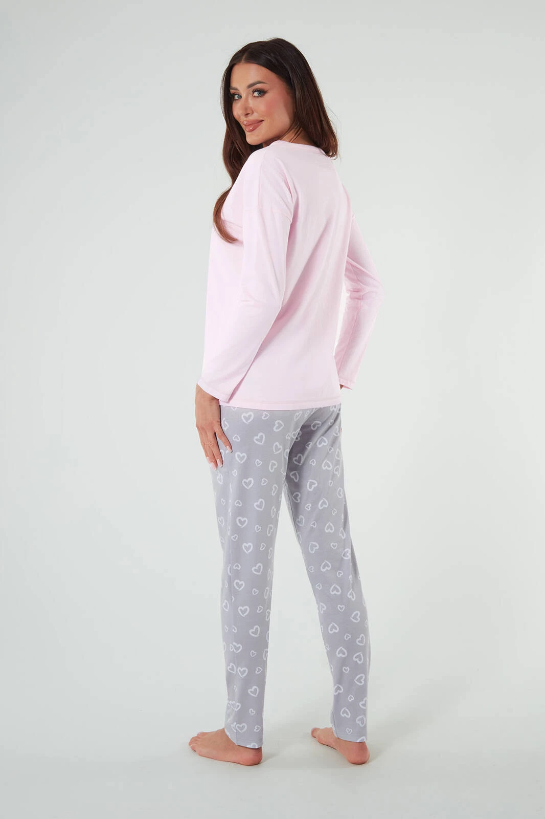 Dámské pyžamo Noelia s dlouhým rukávem. dlouhé kalhoty růžové/potisk