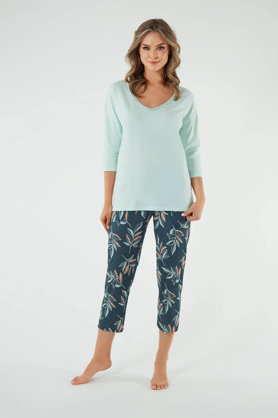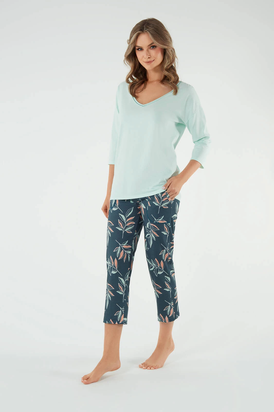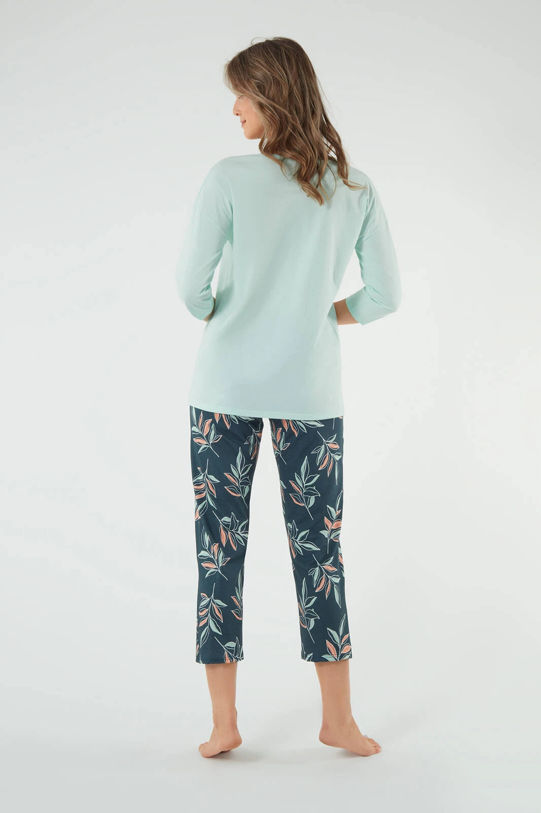 Dámské pyžamo Julietta s 3/4 rukávem. 7/8 kalhoty pistáciové/potisk