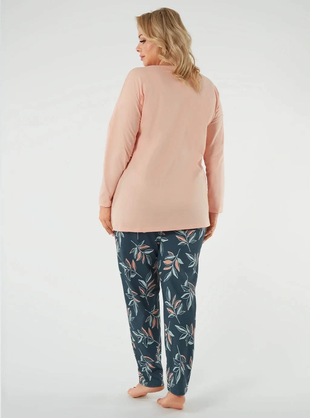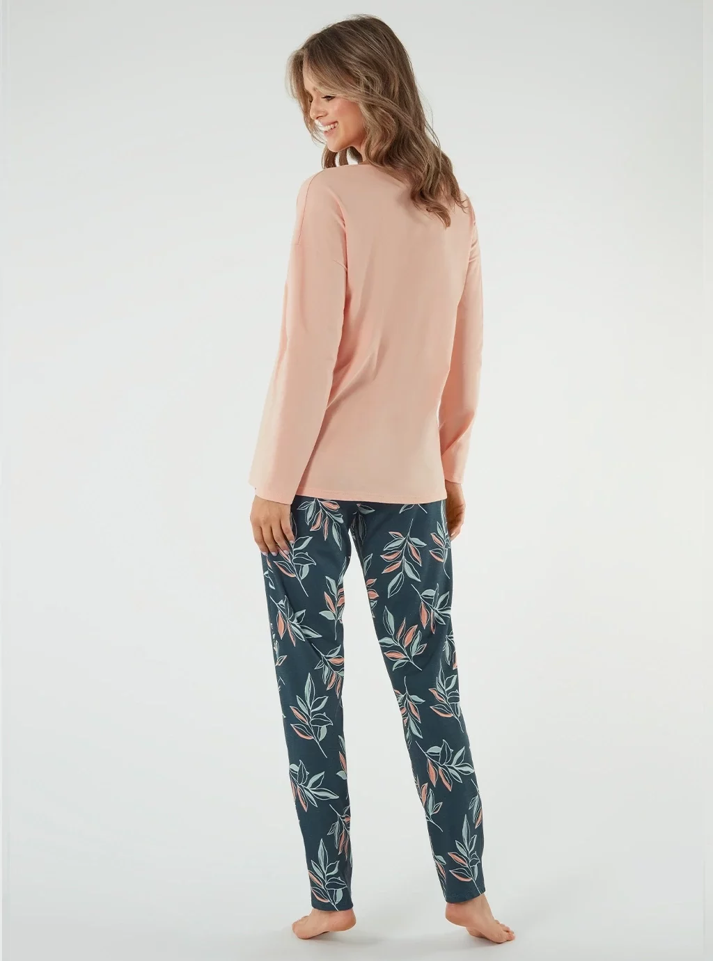 Dámské pyžamo Julietta s dlouhým rukávem. lososové/potisk dlouhé kalhoty
