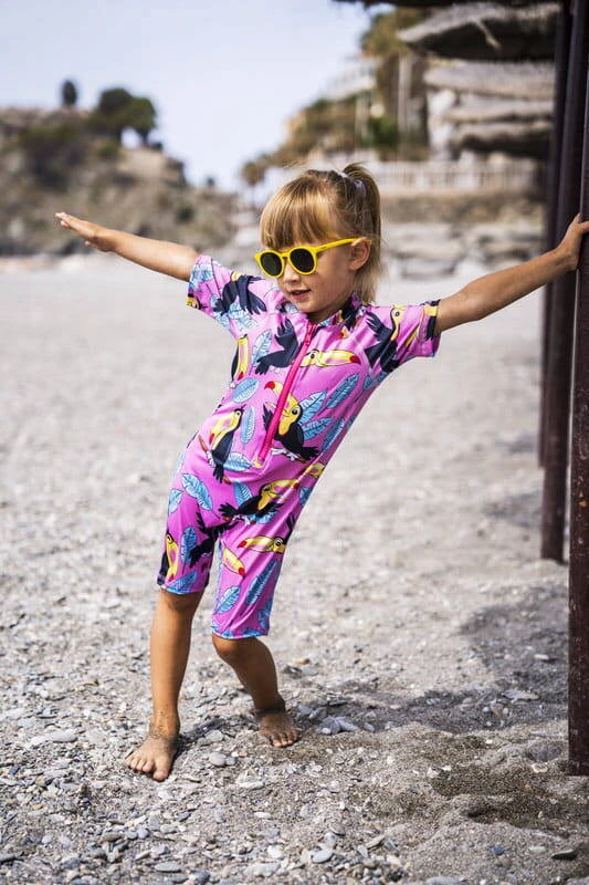 Růžový dětský oblek s motivem tukana je perfektní volbou pro malé nadšence prázdninového koupání. Tyto dětské plavky poskytují nejen pohodlí, ale také ochranu před UV zářením. Dětský overal nesmí chybět v šatníku malého človíčka během letních radovánek.