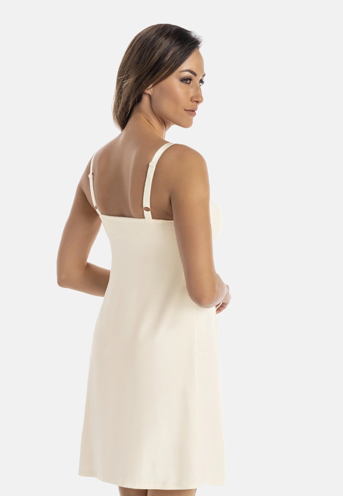 Střih: Noční košile má mírně rozšířený střih do A, který umožňuje pohodlné přizpůsobení postavě a zároveň maskuje její případné nedostatky.