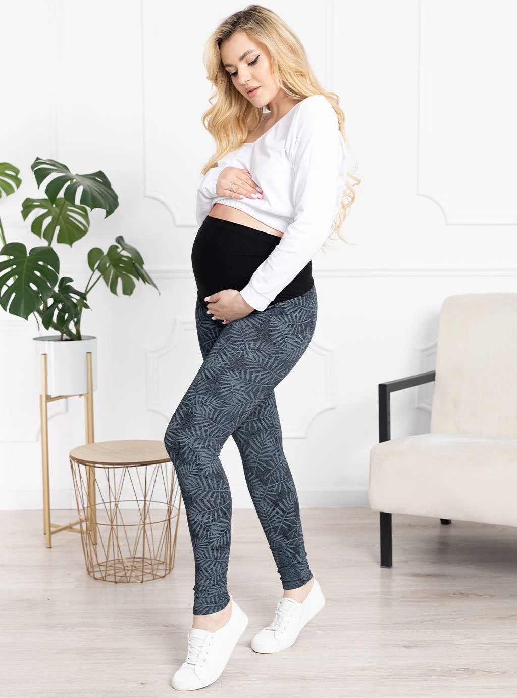 Těhotenské legíny jsou vždy módní volbou, zejména motiv listů v legínách ANNA .