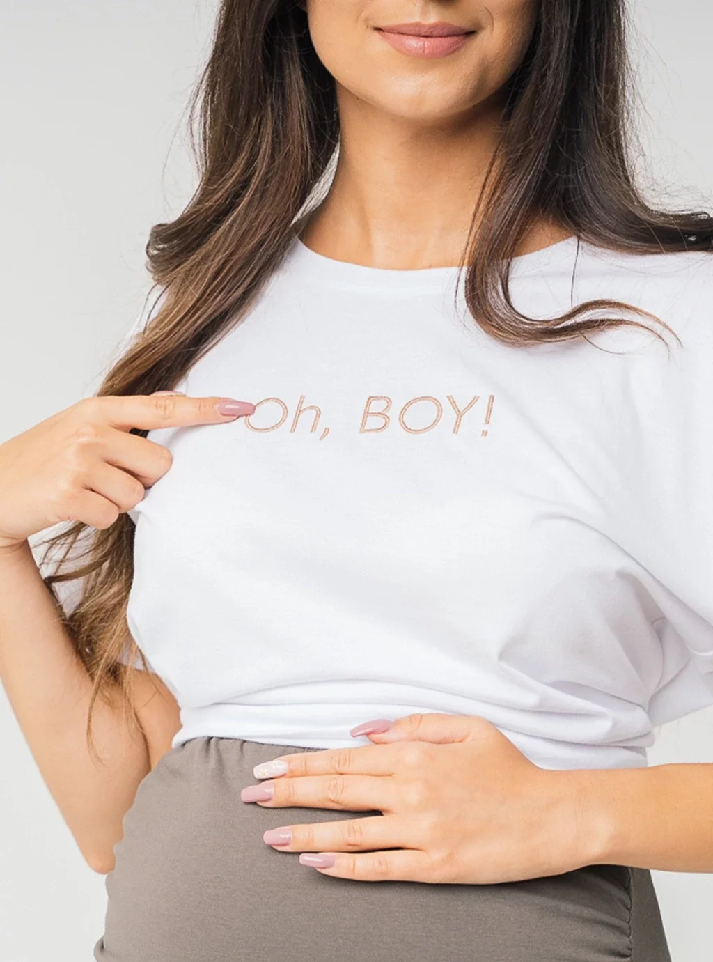 Tričko, oversize těhotenské a kojící tričko Oh, Boy! - Bílá