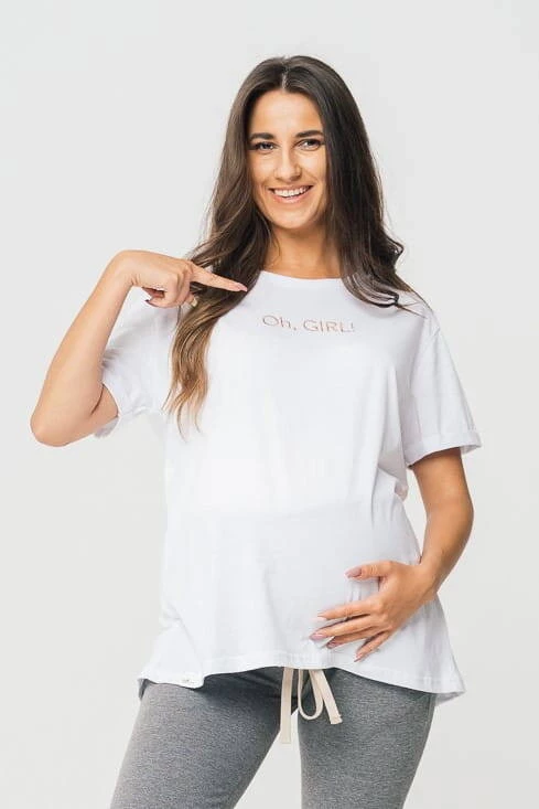 Tričko, oversize těhotenské a kojící tričko Oh, Girl! - Bílá