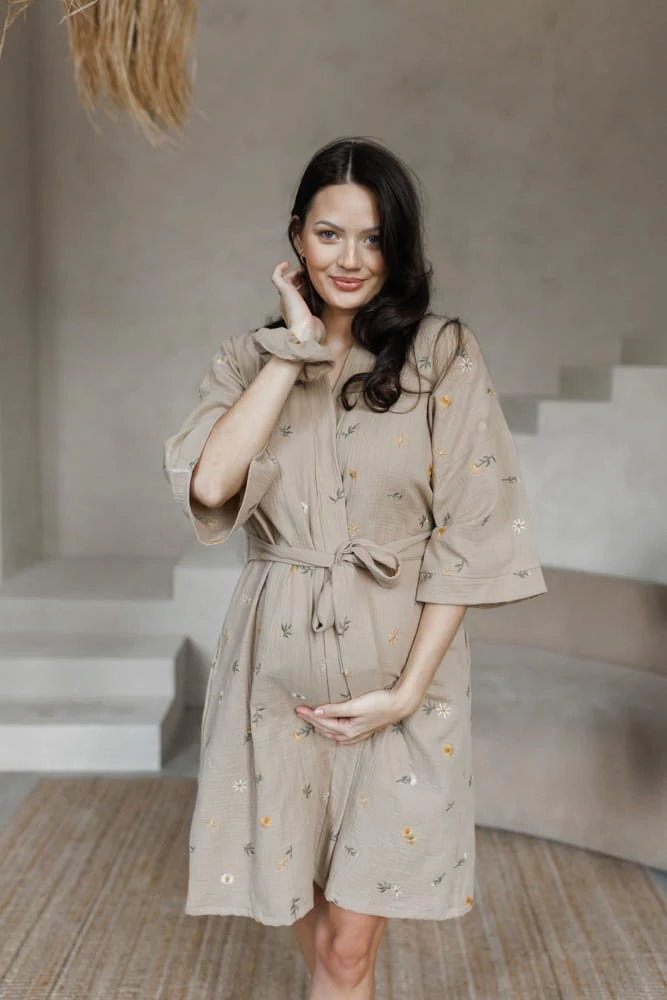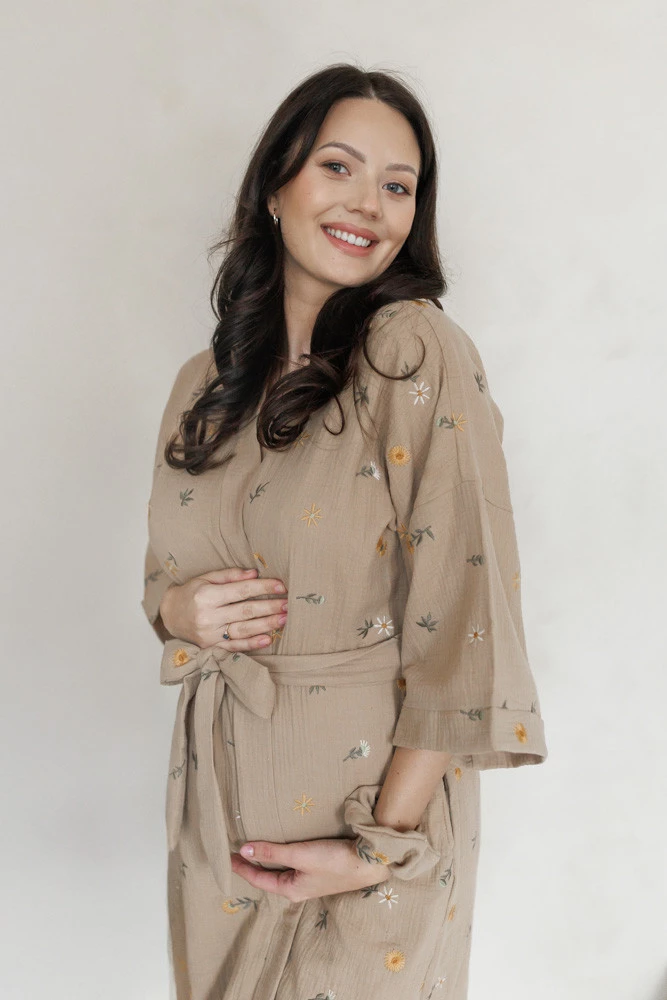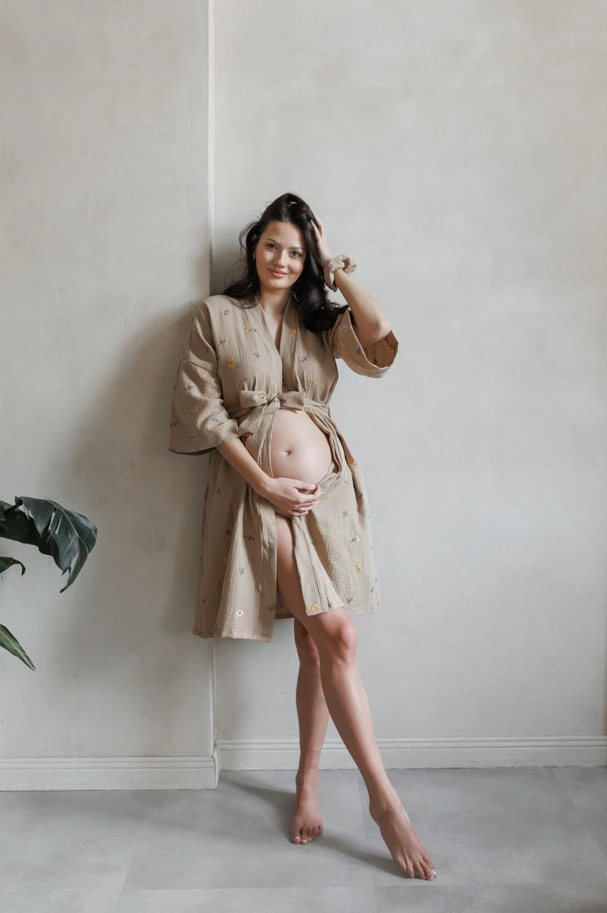 Dámský těhotenský mušelínový župan Kimono  Herbal Latte