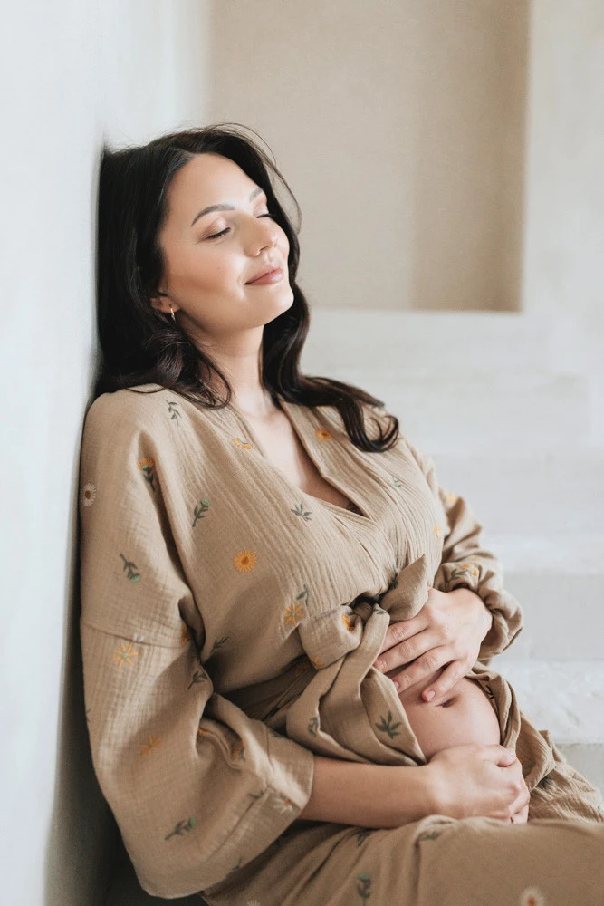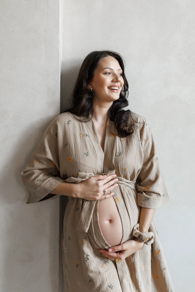 Poznejte náš mušelínový těhotenský župan Herbal latte s jemnými vyšívanými květy. Tento výjimečně měkký bavlněný těhotenský župan byl navržen speciálně tak, aby vás doprovázel od začátku těhotenství až do narození miminka a dokonce i později, až své miminko dokrmíte. Pohodlné a stylové, spojuje funkčnost s pohodlím díky volnému střihu a široké úpravě, která umožňuje snadné přizpůsobení rostoucímu bříšku. I po porodu si tento mušelínový bavlněný těhotenský župan zamilujete.