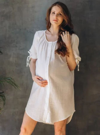 Volný střih a jemný materiál zajistí pohodlí a volnost pohybu při porodu. Šaty neomezují v pohybu, což je důležité v různých fázích porodu, včetně podávání anestezie.