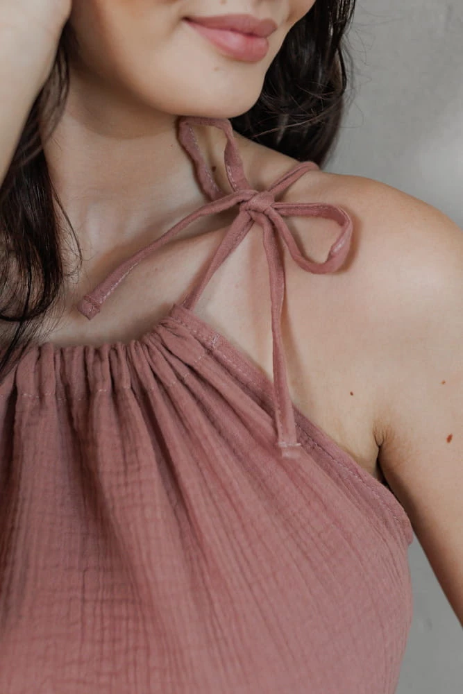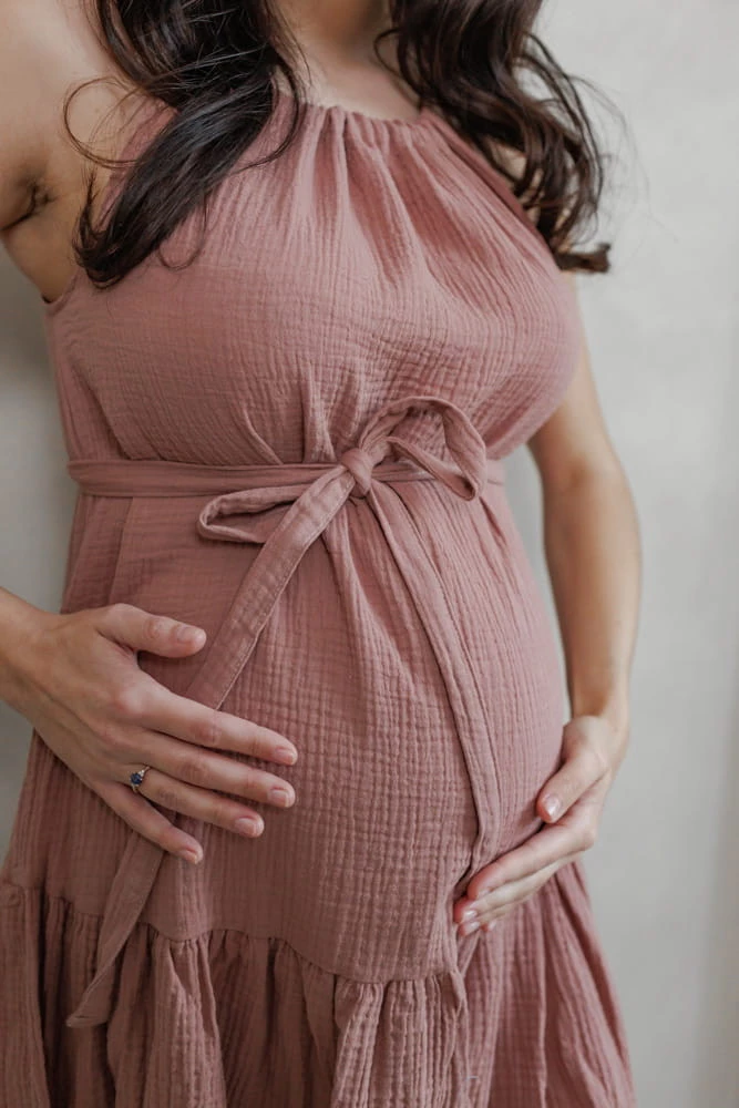 Oversize Hot Summer mušelínové těhotenské a kojící šaty - Old Blush