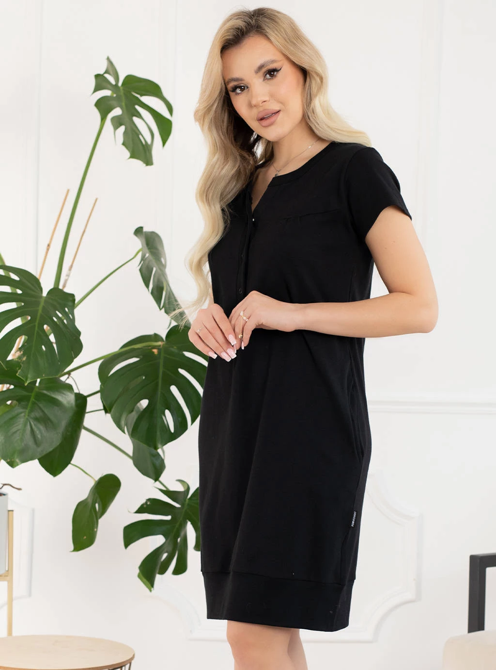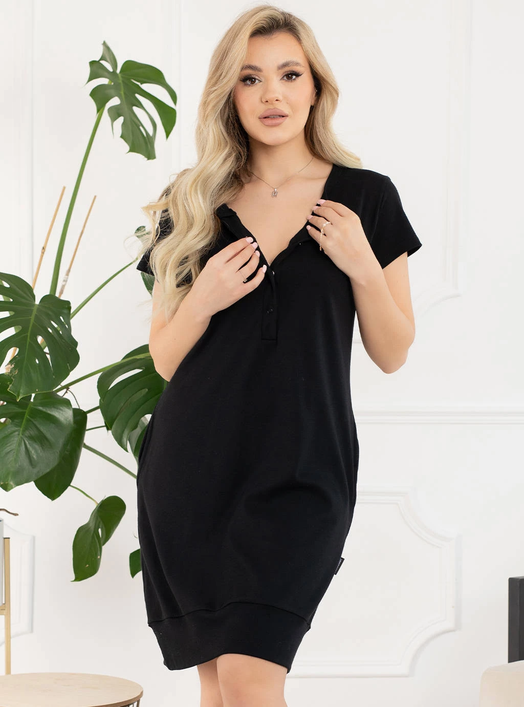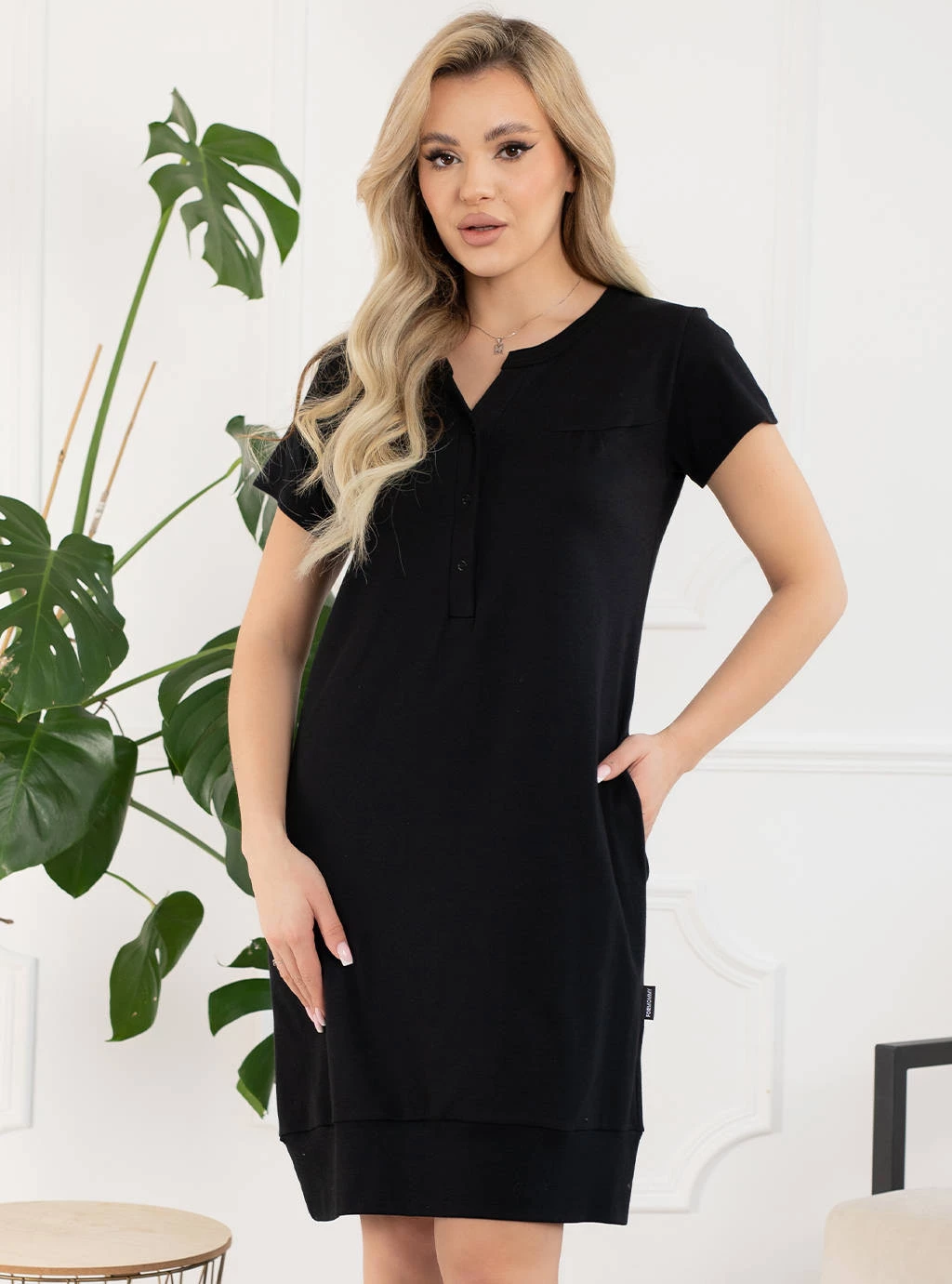 V našem internetovém obchodě dbáme na to, aby se budoucí maminka cítila pohodlně, proto je pro nás velmi důležité, z jakého materiálu jsou naše noční košile vyrobeny. Černá kojicí košilka Sunny snadno nahradí vaše stávající těhotenské oblečení. Kojicí košile od Formommy se rozepíná uprostřed pomocí bezniklových zapínání, je nealergizující a umožňuje kojit dítě neomezujícím a pohodlným způsobem. Jemné záševky v horní části košilky Sunny a netlačící lem ve spodní části jí dávají tvar krásných bombarďáků, které se pěkně přizpůsobí vašemu rostoucímu bříšku. Dalším prvkem těchto kojících a porodních košil jsou malé kapsy, do kterých si můžete uložit drobné těhotenské předměty nebo si jednoduše zahřát ruce.