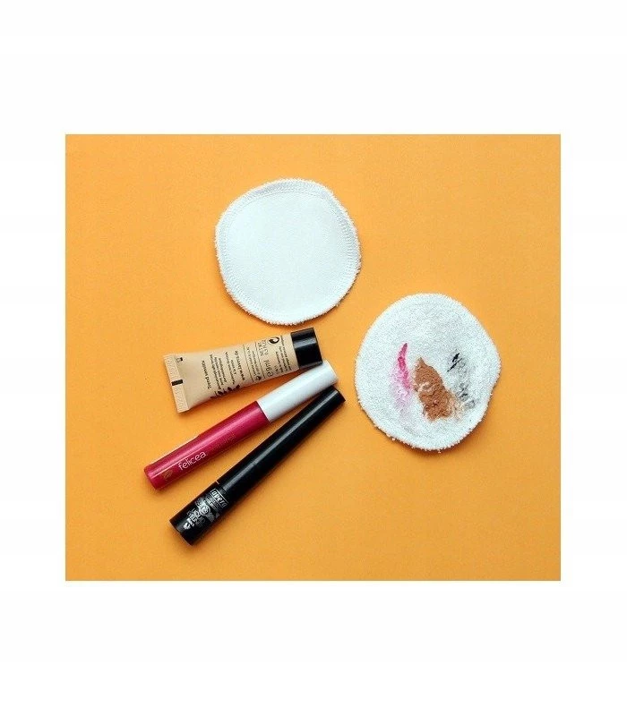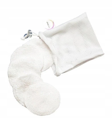 Vyrobeno v Polsko opakovaně použitelné kosmetické polštářky o průměru přibližně 7 cm. Na jedné straně měkké organická bavlnadruhý měkký bambusové rouno. Ideální pro odstranění make-upu, čištění pleti obličeje a krku vašeho dítěte.