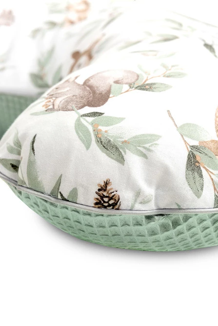 Polštář usnadňuje svalová relaxace ramena a krk. Umožňuje krmit dítě ve vzpřímené poloze, aniž byste se museli ohýbat zmírňuje zatížení páteře. Zaručuje relaxaci a odpočinek. Polštář má snímatelný povlak na polštářtakže se snadno udržuje v čistotě. Krmný roh je naplněn měkké silikonové kuličky
