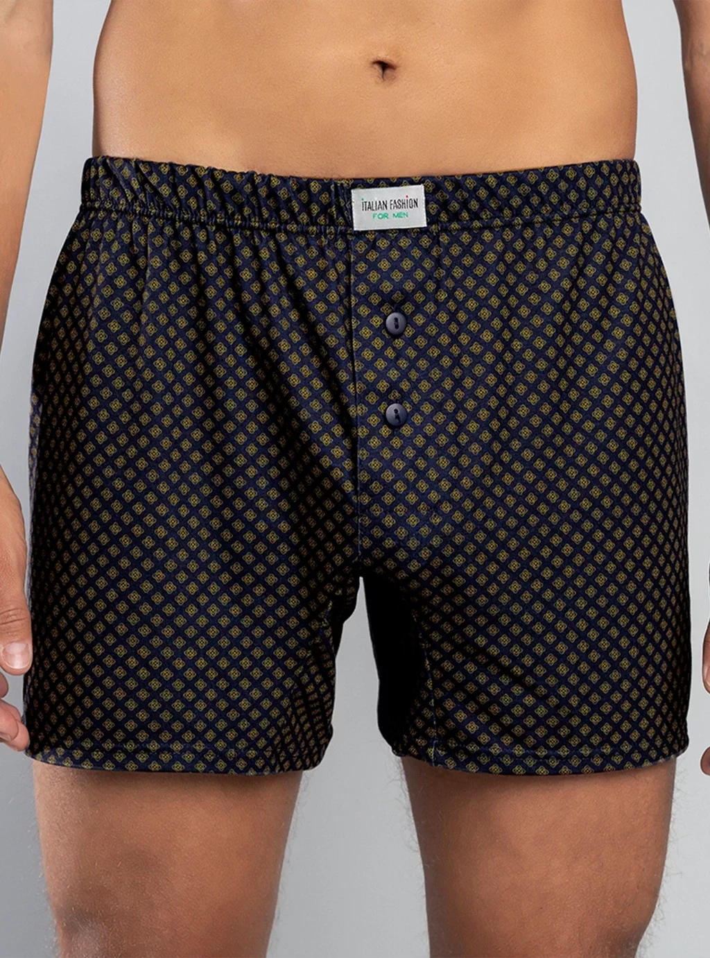 Elegantní vzor: Malé kosočtverce na tmavém pozadí dodávají boxerkám stylový vzhled.