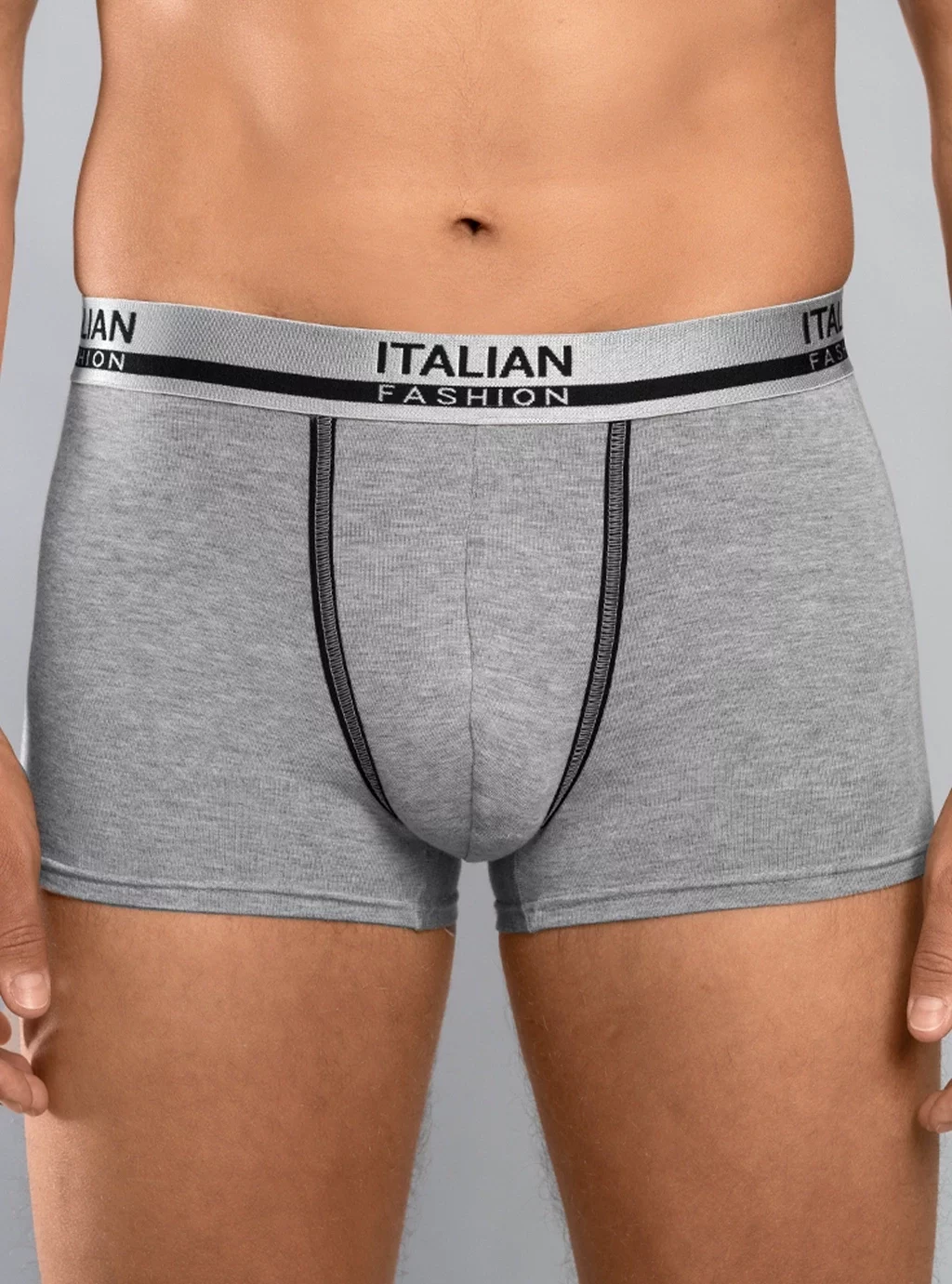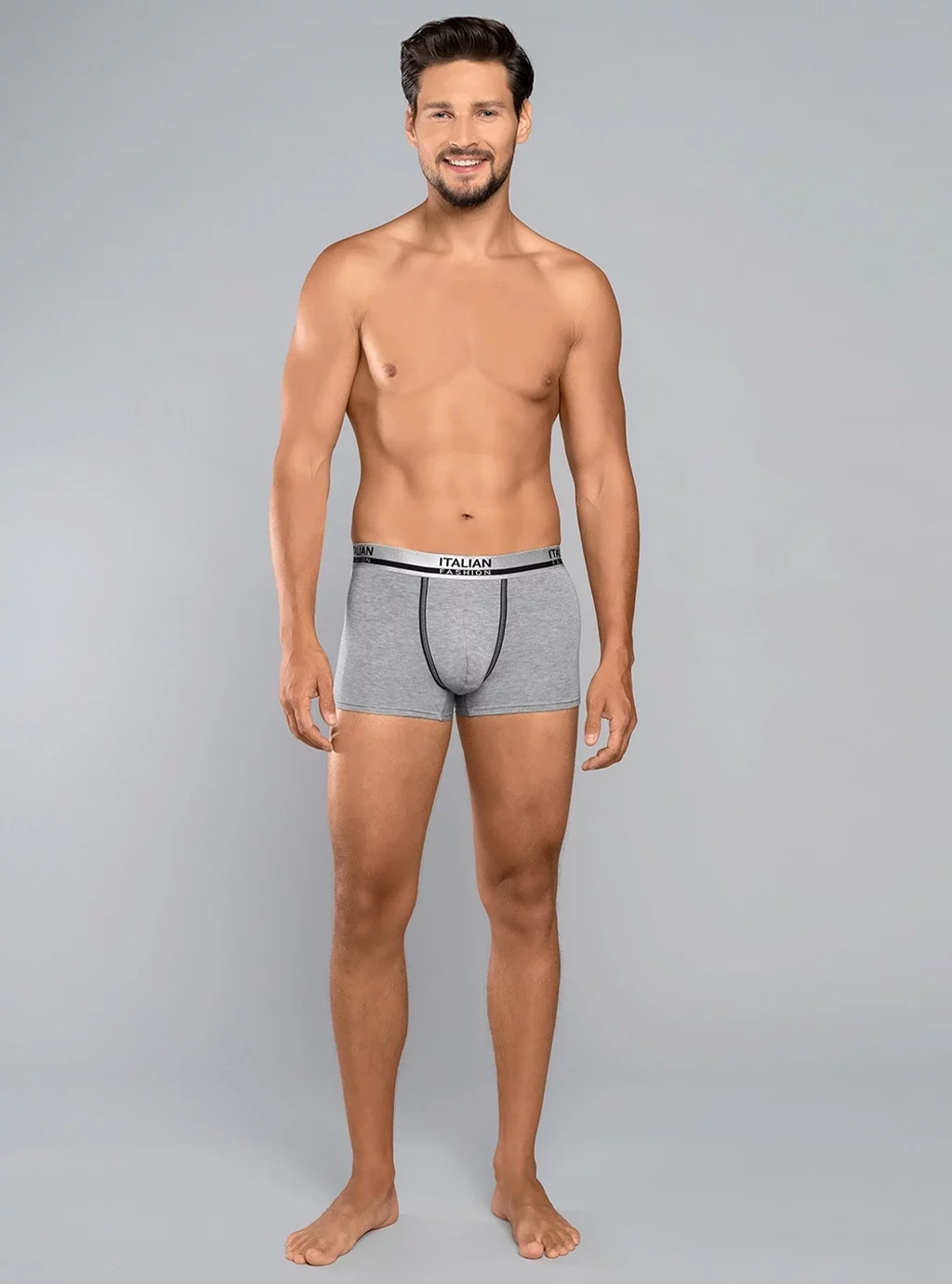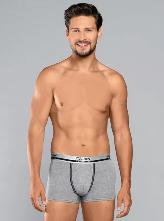 Věnujte pozornost klasické šedé barvě, která dodává tomuto produktu moderní vzhled. Kontrastní černé švy a módní pásek s nápisem "Italian Fashion" zdůrazňují jejich stylový charakter. Klasický střih zajišťuje pohodlí při nošení a zároveň dokonale zvýrazní mužskou postavu. Díky použití viskózy a elastanu jsou boxerky extrémně měkké a příjemné na dotek. Elastický pas zajišťuje pevné držení a zároveň je dostatečně jemný, aby netlačil na bříško. Látka použitá k šití těchto pohodlných boxerek je lehká a pružná, díky čemuž pánské boxerky perfektně padnou na tělo a zajišťují plnou svobodu pohybu.