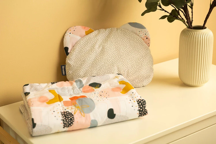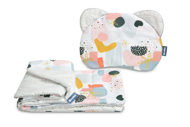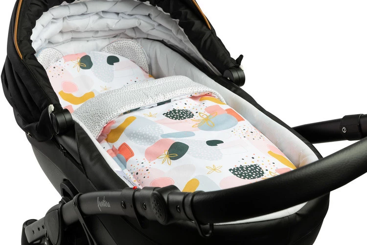 Součástí kočárku je polštářek a deka s vrstvou výplně ze silikonové netkané textilie. Sada je ideální do kočárku, postýlky nebo jako měkká podložka pro miminko. Samotný polštář může sloužit jako mazlíček. Souprava je vyrobena ze 100% bavlny s unikátním vzorem.