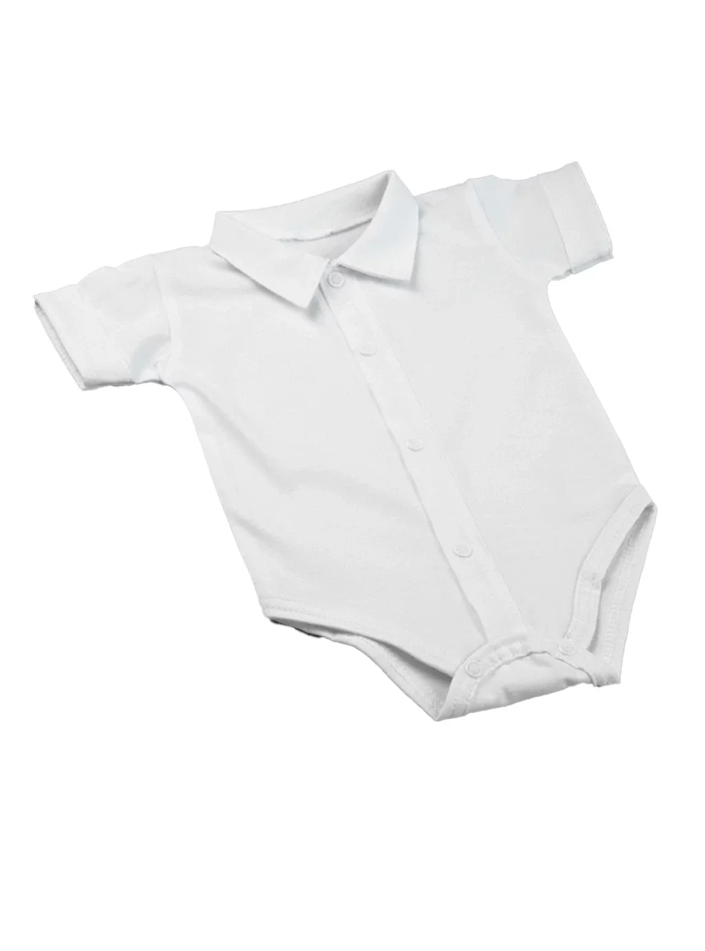Klasické bílé kojenecké body pro kluka v košilkovém střihu s jemným límečkem. Kojenecká košilka má rozepínání na rukávech a patentky bez obsahu niklu na přední straně zajišťující snadné oblékání a svlékání miminka. Jedná se o unikátní kojeneckou výbavičku vyrobenou z měkké a na dotek příjemné 100% bavlny zajišťující pohodlí a volnost pohybu. Antialergické patentky v rozkroku usnadňují kdykoliv výměnu plenky.