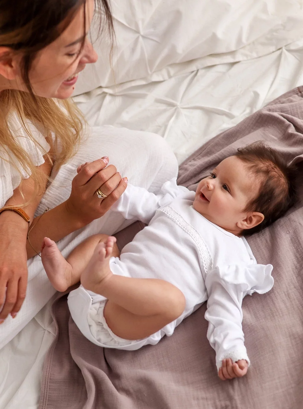 • Vzdušná a příjemná na dotek, měkká mušelínová bavlna umožňuje pokožce novorozence dýchat