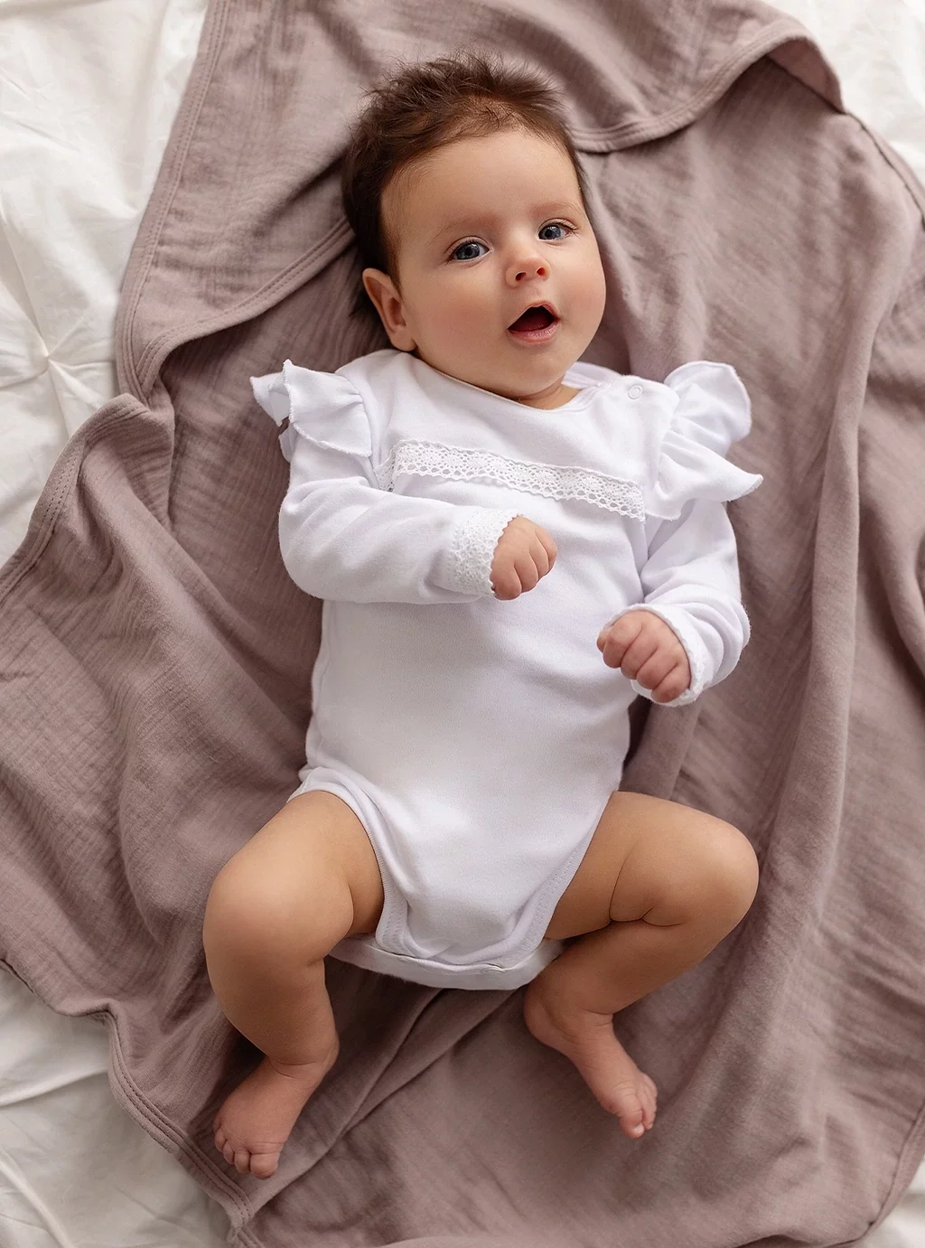 Elegantní kojenecké košilové body z mušelínu s dlouhým rukávem výhody: