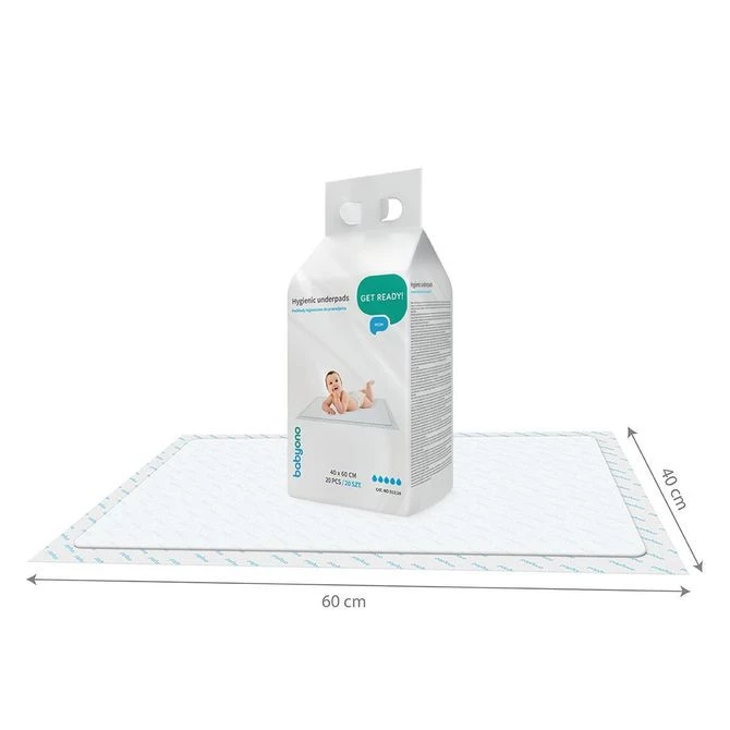 Hygienické vložky pro použití při přebalování dětí. Jsou určeny také pro ženy v období po porodu. Vysoce absorpční. Díky tomu poskytují pocit hygieny a pohodlí a poskytují dostatečnou ochranu před promočením. Vnější fólie chrání před znečištěním. Superabsorbent uvnitř vložky rychle absorbuje tekutiny a neutralizuje nepříjemné pachy. Podložky jsou ideální pro ochranu lůžkovin a matrace v dětské postýlce během učení na nočník. Vnější vrstva je měkká a jemná pro citlivou pokožku a je propustná pro vzduch, aby se zabránilo odření.