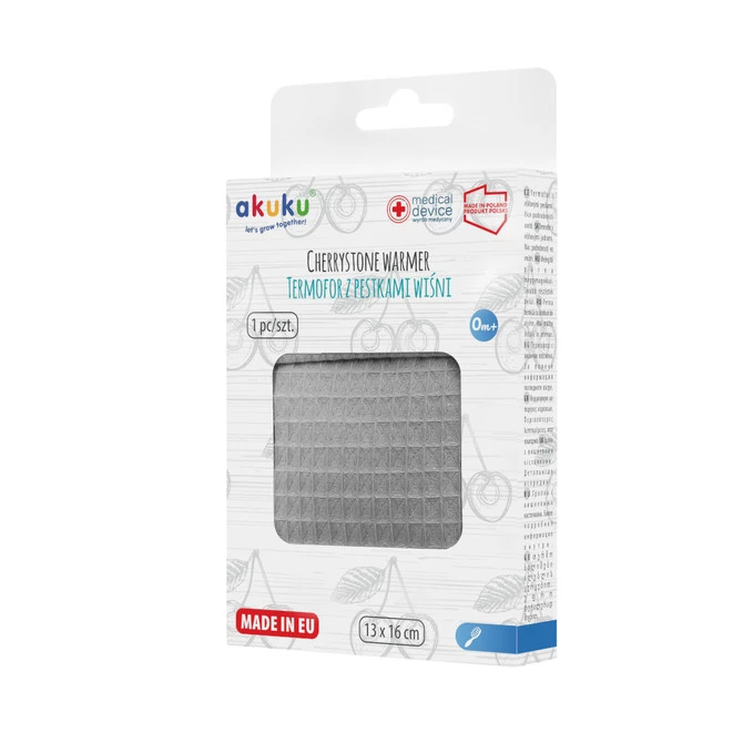 Termoformer naplněný třešňovými peckami se používá pro chlazení nebo zahřívání bolestivých míst. Použití semen nepředstavuje žádné riziko popáleniny, omrzliny, otravy z výplně nebo výskyt kožních alergií. Tento produkt zcela bezpečné. Byl vyroben z nejkvalitnějších materiálů - s 100% bavlna a třešňové pecky z polského pěstování. Materiály podléhají přísnému výběru.