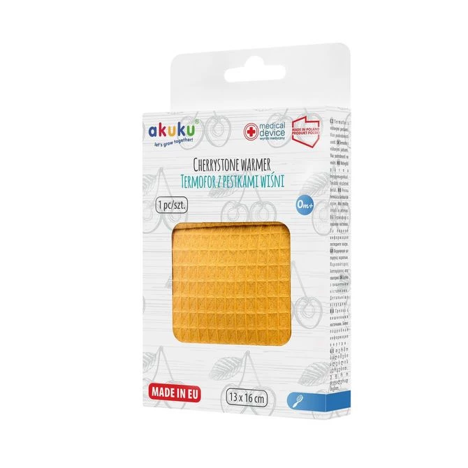 Termoformer naplněný třešňovými peckami se používá pro chlazení nebo zahřívání bolestivých míst. Použití semen nepředstavuje žádné riziko popáleniny, omrzliny, otravy z výplně nebo výskyt kožních alergií. Tento produkt zcela bezpečné. Byl vyroben z nejkvalitnějších materiálů - s 100% bavlna a třešňové pecky z polského pěstování. Materiály podléhají přísnému výběru.