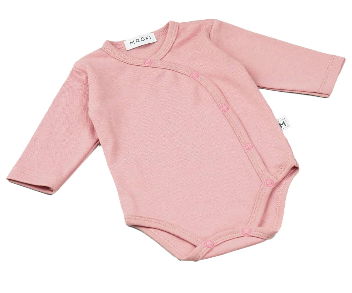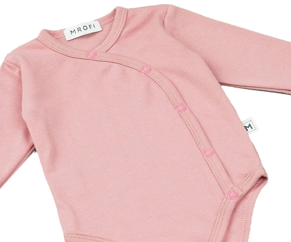 Pokud je pro vás přebalování miminka náročné, věnujte pozornost psaníčkovému kojeneckému body z velmi kvalitní organické bavlny Mrofi. Toto dětské body se zapíná na patentky bez obsahu niklu po celé délce oblečení Obálkové body se zapínáním v rozkroku pro snadné oblékání a svlékání miminka. Dětské body s dlouhým rukávem v třešňové barvě je příjemnou volbou pro malou princeznu a střih usnadňující oblékání je jistě předností této barevné série z biobavlny Mrofi.