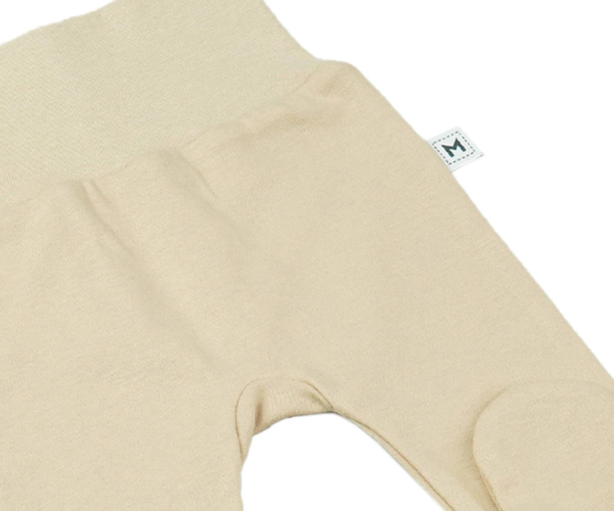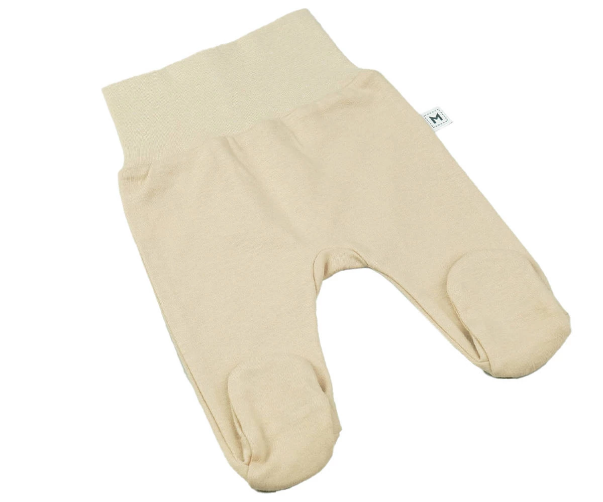 Béžové polospáčky z organické bavlny Mrofi, bezpečné pro dětskou pokožku, jsou produktem pro chlapce i dívky, nepostradatelné v kojenecké výbavě do nemocnice, ideální pro použití doma. Pláštěnky s podpatky zabraňují promrzání nožiček. Výběrem dětských dupaček pískové barvy z jemné bavlny víte, že kupujete polské kojenecké oblečení šité polskými výrobci z té nejlepší organické bavlny, která zaručuje bezpečnost a pohodlí, i když má vaše dítě atopickou dermatitidu.