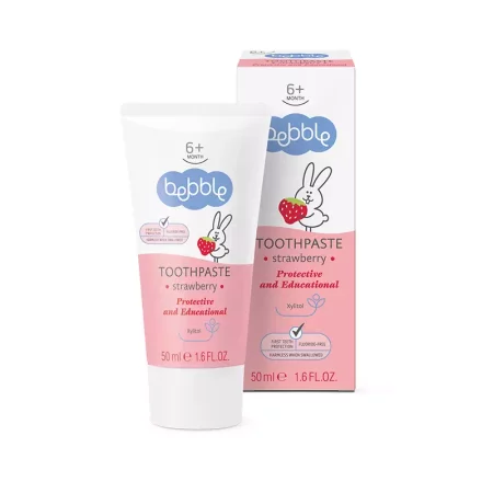 První dětský malý zub by měl znamenat začátek správné ústní hygieny. Během prvních několika měsíců prořezávání zoubků můžete pečovat a čistit dásně a rostoucí zuby pomocí našeho gelu na prořezávání zoubků a jemné, měkké gázy. Když vaše ratolest může stabilně postavit na vlastní nohy – obvykle mezi osmým a dvanáctým měsícem života – můžete ji začít učit samostatně čistit zuby kartáčkem. Dětská zubní pasta Bebble neobsahuje abrazivní prvky a působí proti zubnímu kazu, čímž šetrně čistí první zoubky. Přírodní xylitol působí proti růstu mikroorganismů a podporuje posílení skloviny. Naše dětská zubní pasta neobsahuje fluoridy, konzervační látky ani barviva, díky čemuž je neškodná i při požití. Děti milují jemnou jahodovou příchuť! Pastu používejte již od velmi raného věku pro usnadnění, dítěti vytvářejte pozitivní návyk správné ústní hygieny.