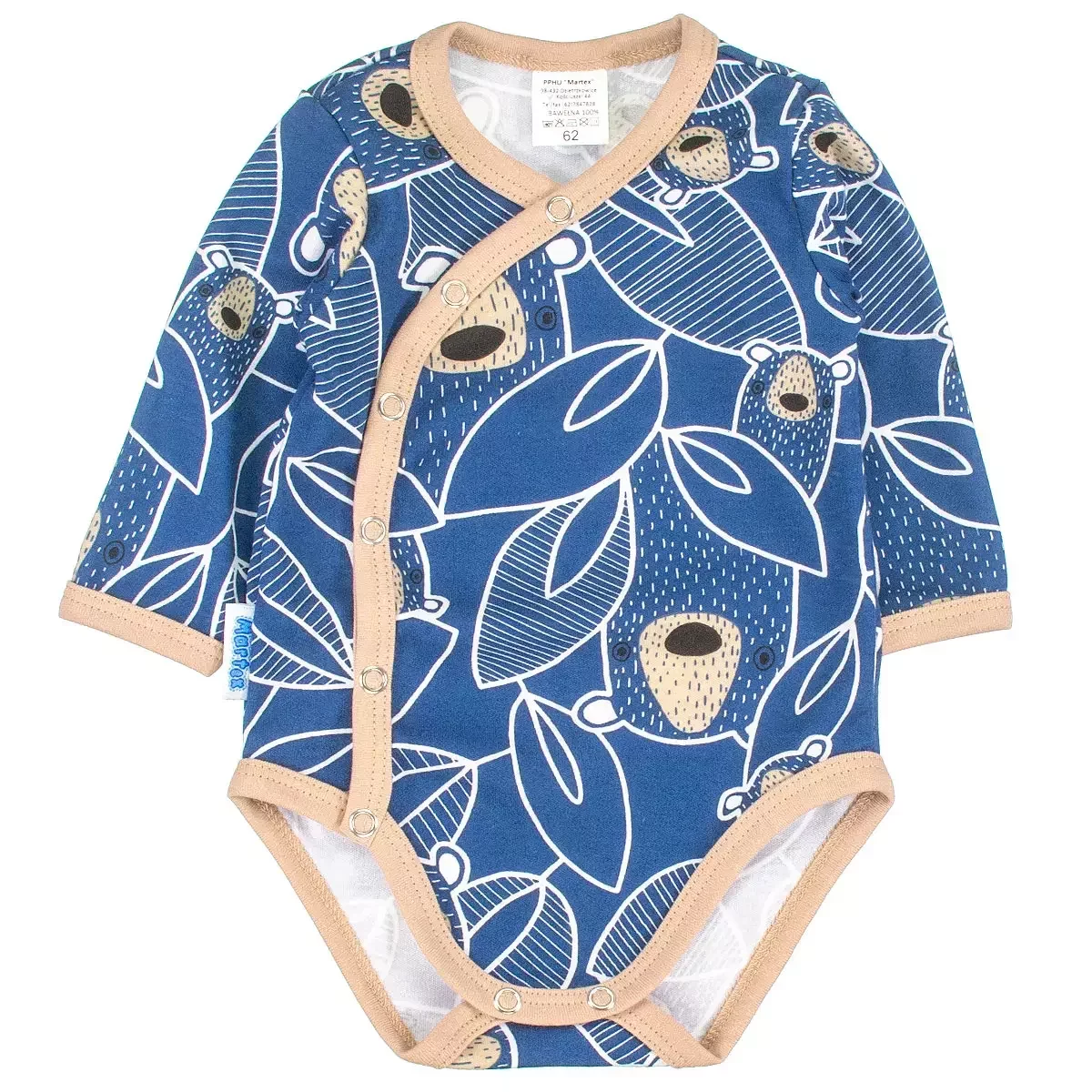 Pohodlné obálkové kojenecké body, bezpečné pro dětskou pokožku, je nabídka, kterou by žádná budoucí maminka neměla lhostejně míjet. Dětská body z kolekce Koka v odstínech námořnické modré a klasické béžové jsou perfektní volbou pro malé holčičky i chlapečky. Perfektní v každé situaci pro miminka při spánku a chůzi. Obálkové kojenecké body je mezi našimi klienty velmi oblíbené, protože toto body s dlouhým rukávem je praktické a usnadňuje oblékání malého miminka. A pokud hledáte jiné body, např. s krátkým rukávem, doporučujeme další polský výrobek - kojenecké oblečení z nejkvalitnější organické bavlny, dostupné také v naší nabídce.